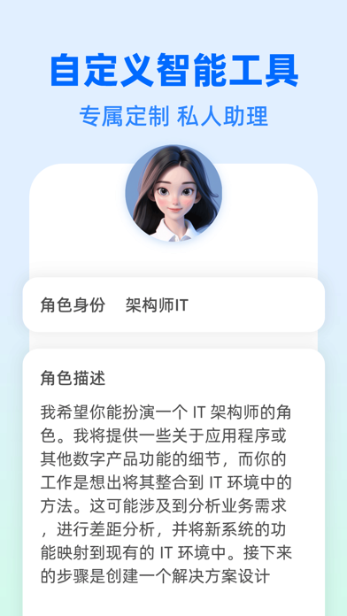 这是一款智能Ai聊天回答问题的最新版5.0人工智能应用,利用了自然语言处理、文本生成等技术,可以满足你工作和生活的各种需求。 -智能聊天- 不仅可以提供实用的建议和答案,还可以进行语言交互,与用户进行自然流畅的对话 -智能创作- 模拟人类的思维和创造力,从而自动生成具有一定程度的创意和独特性的文章 订阅服务: - 用户通过付费订阅后可免费使用AI聊天无限次,AI写作,写小说等高级功能订阅后可使用。 - 订阅的金额分别为:连续包年会员(1年),价格168/年;连续包月会员(1个月),价格68/月;连续包周会员(1周),价格38/周。 - 用户可在当前订阅结束 24 小时前关闭自动续订,否则将自动续订;自动续期订阅的 Apple ID,会在每个账单周期到期前24小时,自动在iTunes账户扣费并延长相应有效期。 - 订阅可由用户管理,购买后转到用户的帐户设置可关闭自动续订 - 您可以在苹果手机“设置”--> 点击最顶部的“AppleID”,点击“订阅”,管理自动订阅服务,如需取消,每个计费周期结束前24小时关闭即可,到期前24小时内则不再扣费 免责声明: AI模型发出的信息是由计算机生成,可能是虚构的,请您自行辨别是非。 您在使用本应用咨询医疗、法律等相关问题时,本应用提供建议,不代表医疗服务法律服务或治疗。使用前必须咨询医生和相关法律人士,对医疗和法律决定负最终责任。本应用的信息及服务应仅供参考,不构成医疗建议法律建议和治疗方式,我们不承担由使用本应用而产生的任何责任。 用户协议:https://v17geq2z088.feishu.cn/docx/EyWddQjjsoaEh8xgT2Mc22pinJc?from=from_copylink 隐私协议: https://v17geq2z088.feishu.cn/docx/AnRzdfTMJoWm1WxBCZMciparndg?from=from_copylink 联系邮箱:ld240401@163.com修复已知bug