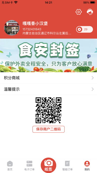 尚尚商户,是河北乐聪网络科技股份有限公司自行设计研发的款运用物联网+互联网技术保证外卖配送期间食品安全的平台。可实现全程记录商户上锁、骑手配送、用户解封的时间位置,真正做到全程数据可追溯、可查询。1.登录页新增图形验证码。