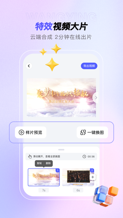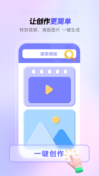 旺影 | 让创作更简单,让设计更有价值!只需要改字换图,就可以快速设计出各类精美图片或视频大片! 【选模板】-【替换图文】-【导出保存】,只要简单的这3步,就可以获得您想要的视频或图片内容。模板持续更新,高品质的优秀模板,尽在旺影。 「原创精选,模板周周上新」 强大专业的设计师团队,每位设计师都有多年从业经验,保证模板质量; 模板每周持续更新,未被满足的需求可以随时提交,我们会根据您的需求进行更新; 「实时预览,增加可编辑性」 您在旺影移动端修改了每个文字或图片后都可以实时预览修改的效果,增强可视性; 视频模板中还支持一键替换图片的特色功能,让您操作更简便; 「多种场景,满足更多需求」 模板包含企业宣传、校园活动、婚礼爱情、生活纪念、片头片尾、儿童生日、快闪促销等场景; 总有一个方向满足你现在的需求,当然如之前所说,您可以随时向我们提交您的需求! 「多端通用,方便您的创作」 旺影在移动与Web上都支持创作,制作出的视频最高可达1080P分辨率,高清又方便; 支持主流平台的分享,对您喜爱的模板可以一键分享给好友,让好友一起制作同款! 关于旺影: 旺影官网:https://www.wangying.cn/ 公 众 号:旺影 反馈与建议:738606494(QQ群) 隐私政策:https://www.wangying.cn/terms/privacy 用户协议:https://www.wangying.cn/terms/user-agreement 关于旺影:https://www.wangying.cn/about1、修改功能BUG 2、提高稳定性,适配更多机型
