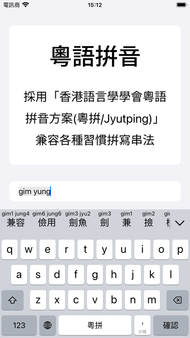 粤语拼音输入法,简单易用、范式明瞭,打字快速准确、得心应手。 识讲就识用,自然流畅,我手写我口。 每一次输入,都会温习、巩固一次读音。越用粤拼,就越熟悉粤语。 开箱即用,无需各种繁琐设定。 开源、免费、无广告,全程单机离线,无需担心私隐问题。 采用香港语言学学会粤语拼音方案(粤拼/Jyutping),兼容各种习惯拼写串法。 可以用普通话拼音、仓颉、速成、笔画、拆字等反查粤语拼音,应用程式内有详细介绍。 粤拼键盘功能简介: • 支持粤拼全拼输入,例如 neihou → 你好。 • 支持粤拼简拼输入,例如 nh / nhou / neih → 你好。 • 支持粤拼声调输入,打字更精准。而且可以帮助学习者熟悉粤语声调。 • 候选词会标示对应嘅粤拼音节注释。既降低咗上手难度,同时又可以不断练习、熟悉、纠正读音。 • 候选词支持传统汉字、简化字自由选择,并且传统汉字区分港台字形标准。 • 可以用普通话拼音反查粤拼。以 r 开始,再输入普通话拼音即可,例如 rlin → 林。 • 可以用仓颉或速成反查粤拼。以 v 开始,再输入仓颉/速成码即可,例如 vdd → 林。 • 可以用笔画输入反查粤拼。以 x 开始,再输入笔画码即可,例如 xwsad → 木。 • 可以用拆字输入反查粤拼。以 q 开始,再输入拆开嘅两个字嘅粤拼即可,例如 qmukmuk → 林。 • 支持表情符号(Emoji)候选词,并且会契合粤语用词习惯。例如键入 daai cung(大虫)就会出老虎 Emoji。 • 词库内含大量粤语词汇,贴合粤语语法文句,打字连贯流畅。 • 有多种键盘排列布局可选择,26键全键盘(QWERTY)、26键三拼、九键(九宫格)等。 • 键盘提供复制、剪下、贴上、左右移动输入位置等各种便利操作。 • 键盘可启用声音及触感(振动)回应,有多个振动强度可供选择。 主应用程式提供各种粤语资料,方便随手学习、熟悉粤拼。 主应用程式功能简介: • 粤拼键盘各种功能使用介绍。 • 粤拼声母、韵母、声调表。 • 常见粤语表达、用字、词句。 • 常见粤语字词读音。 • 粤语字音、字典检索。 • 文字粤拼翻译转换。 • 粤语语音朗读。 尊重用户私隐,绝无收集任何个人资讯。 本应用程式已开放源码于 GitHub: https://github.com/yuetyam/jyutping 更多了解粤拼以及粤拼输入法,欢迎访问官网: https://jyutping.app• 新增调整键盘输入键高度嘅设定项。 • 改进字母键上下滑动手势处理。 • 改进声调以及音节分隔输入算法。 • 改进键盘部分按键设计样式。 • 改进主应用程式嘅查字音功能。