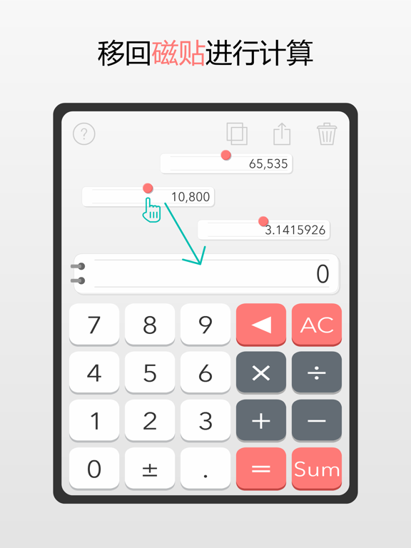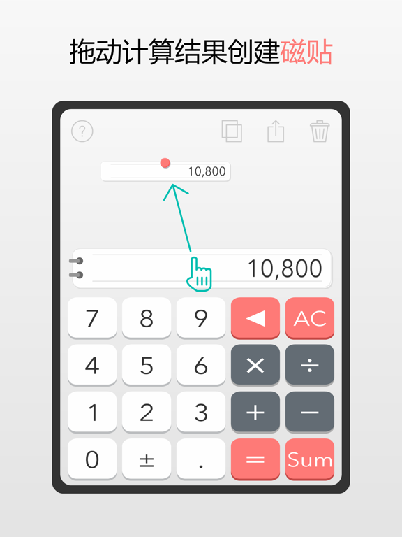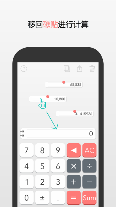 ~记忆保存多条计算结果~ 智能手机时代的计算器新革命 - 直观移动计算结果 - 像磁贴般随处粘帖 - 计算结果复制粘贴,发送,分享 - 不使用的结果移入废纸篓 - 一键计算所有磁贴的合计 - 日常生活所使用到的计算功能 - 主题皮肤 超出普通计算机想象的APP,感受一下新的计算体验吧。修正一个小 bug