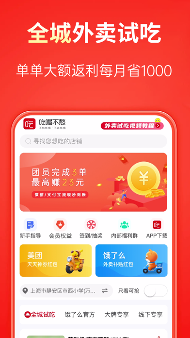 吃喝不愁外卖试吃返利平台,是一款专注为用户省钱的生活工具。附近的外卖商家,在吃喝不愁平台发布外卖霸王餐、外卖试吃以及外卖返利活动,让每一位吃喝不愁平台的用户实现花更少的钱,吃更好的饭。同时每一位商家也通过吃喝不愁平台让产品获得更多流量曝光,更多顾客反馈,助力其做好产品优化和流量运营,实现产品触达更多消费者,解决其酒香也怕巷子深的痛点。 吃喝不愁团队始终秉持着"用户至上"的原则,并注重数据分析和技术创新,不断提升用户服务和完善平台功能,致力于成为业内,用户口口相传"周全、贴心、优质"的外卖试吃平台。让每一位用户,通过吃喝不愁平台轻松找到并参与适合自己口味的外卖试吃活动,实现吃喝不愁,不愁吃喝。 作为一家充满活力、充满创新精神的公司,我们将继续加大研发力度,不断完善和创新自己的平台服务,让更多的用户和商家获得实实在在的利益。修改已知bug