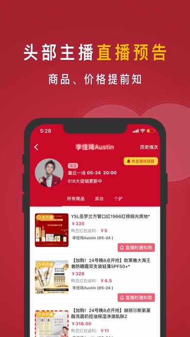 【直播间帮你省钱,知播鸭帮你省时间】 没有时间蹲直播?想买某样东西但又不知道主播什么时候会播 ?很多 爆品抢不到? 知播鸭都可以解决! 【新人福利】 新人超大福利,登录即可获得100元鸭豆红包,还有超多优惠券可领取 【在直播价的基础上还能返现金】 你只知道头部主播的价格低,小鸭鸭在直播价的基础上还能再返现金,现金可直接提现,比低更低 【头部主播直播预告】 头部主播当晚要播的产品和价格一目了然,再也不用到处找预告啦 【开卖提醒】 当主播开始介绍你心水的好物时,知播鸭会第一时间给你推送信息,既不会错过好物,又不用花整晚的时间蹲直播,简直太省事啦! 【商品心愿单】 最近想买某样东西,但是又不知道主播什么时候会播? 那就设定一个商品心愿单吧,未来有主播发布的预告刚好有这个商品时,知播鸭就会给你推送信息。 快用完的东西就去加个心愿单,一有预告就能收到消息,简直不能再省事,还省钱 ! 【秒抢加速】 经常抢不到直播间的爆品?“秒抢加速”你值得一试,智能加速,自动跳转,不管多火爆的品都能帮你搞定!bug修复 UI更新