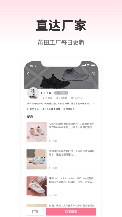 莆田鞋批发专为电商设计、货源平台覆盖了莆田安福、工厂、档口、工作室、自主品牌电商货源、货源有奢侈品包包、品牌鞋服、海淘化妆品、3C产品、专供微商、代理、淘宝、拼多多、阿里等各大社交平台、电商平台、海外自建站平台。 莆田鞋批发商品都是由商家自行发布,实时发布莆田安福最新款式、,热点资讯、公开多种联系方式私下C2C、O2O模式无任何服务费用,拒绝中间差价、支持一件代发、批发、零售、海外代发、外贸供货。 商家发布产品信息以提供货源,迅速解决了货比三家和调货、寻找货源问题。 商家入驻商家1W+覆盖 莆田安福 鞋服 深圳华强北 电子产品 广州(十三行,站西,沙河,女人街,石井,三元里等商圈) 深圳(南油服装商圈,水贝珠宝商圈) 东莞(厚街鞋服商圈) 安福(莆田安福) 华中区资源: 杭州(四季青,意法服装,钱塘江大夏,四季星辰等商圈) 湖州(童装批发市场),濮院,常熟,织里等装批发市场 义乌:微商爆款基地 华北区资源: 即墨(即墨批发城,中纺服装批发) 白沟(白沟网批市场),石家庄(乐城商圈) 一件代发 所有厂家支持一件起批,代发,真正0门槛拿货,0囤货模式。部分已知问题修复