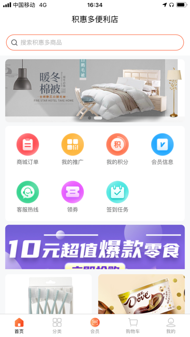 积惠多便利店APP是一款移动购物软件,让购物更简单。具有商品分类/浏览、评论查阅、商品购买、在线支付、订单查询、物流跟踪、晒单/评价、返修退货等功能,为您打造简单、快乐的生活体验。 1. 限时特价:边买边省、今日主推、优惠多多、等。 2. 精选好货:日用百货、生活用品,应有尽有 。 3. 会员信息:积分查询、商品订单积分。 4. 我的:客服热线、订单查询等。1.优化用户体验