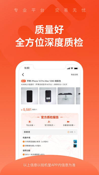 买卖二手,就上拍机堂! 在拍机堂,二手手机、二手平板、二手笔记本等二手数码产品以及二手家电,品类非常齐全,我们努力让买卖二手这件事变得更省心更放心; 在拍机堂,没有中间环节,从买家直接到卖家,价格实惠,许多人都获得了更舒心的体验; 在拍机堂,服务更好,买卖流程由系统判断,问题机器可以退货,专人售后也更放心; 在拍机堂,如果你要买卖二手手机数码或者买二手家电,因为拍机堂有专业优品质检团队,品质更有保证,二手数码可安心买卖,海量二手ZAO起来! ===权限说明=== APP需要申请相机、麦克风、相册、位置的权限用于保障产品跟服务。 · 申请相机权限:扫码物品单号或快递单号或IMEI码功能、视频取证功能录制视频、意见反馈、工商登记、个人认证人脸识别、申请售后上传图片、上传营业证照、客服沟通发送图片、活动奖励上传身份证等场景 · 申请麦克风权限:视频取证功能录制视频、客服沟通发送语音等场景 · 申请相册权限:视频取证录制视频后保存到相册、工商登记上传营业执照、意见反馈、申请售后上传图片、上传营业证照、客服沟通发送图片、签约环节图片OCR识别等功能需要您开启相册权限 · 申请位置权限:与人工客服沟通时发送位置 ====== 怎么联系我们? 如果你手上有闲置的机器,可以关注公众号:【拍机堂卖家服务】,轻松获得收入,赶紧卖起来; 如果你想买二手手机、二手平板、二手笔记本等二手数码产品,可以关注公众号:【拍机堂买家服务】,做个酷酷的剁手党! 有什么意见和建议,都可以跟我们说哦~1、改善了产品体验; 2、修复了部分已知问题。