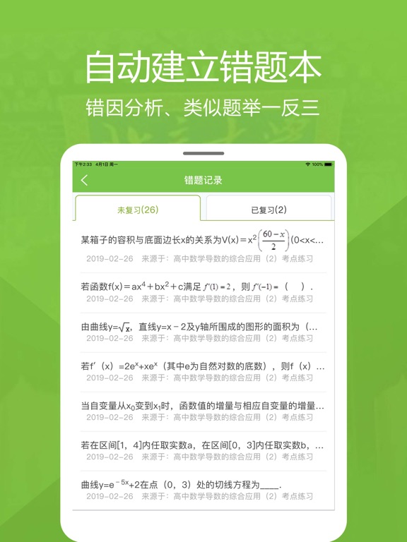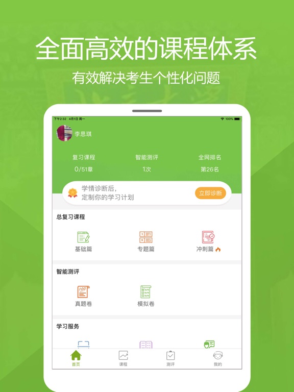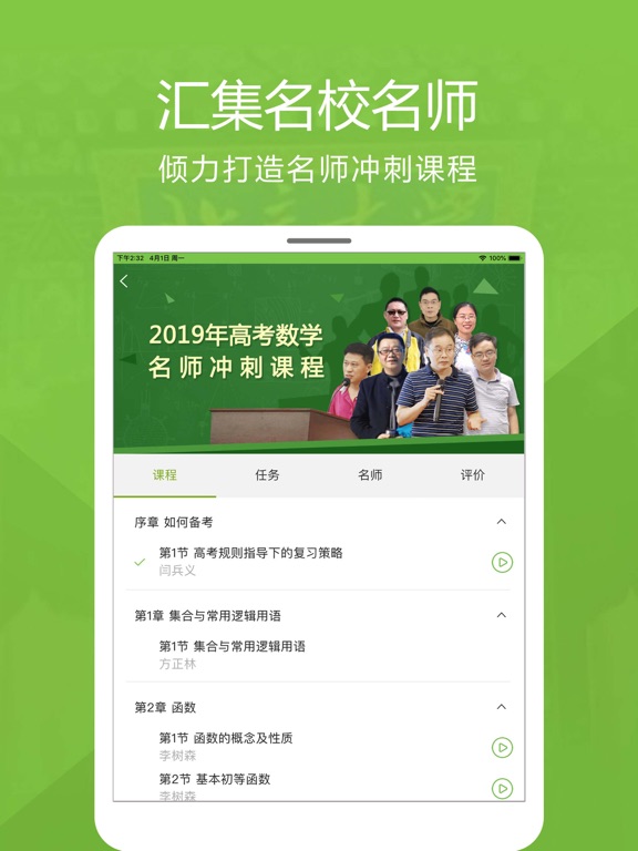 高考提分课程优势: 1.智能诊断系统精准发现与解决考生问题 基于医学模式,人工智能与大数据分析技术,由具备备考命题经验的专家针对高考考情,把握命题方向,精心设计学情诊断方案,实现智能诊断、学习方案推荐与效果检测等环节,形成闭环智能诊断系统,精准推荐个性化学习方案,有效解决考生个性化问题与薄弱环节。 2.全面高效的课程体系有效解决考生个性化问题 课程包含《基础篇》、《专题篇》与《冲刺篇》三大板块,满足考生不同的备考需求。《基础篇》适合全面打牢基础,系统学习,提升成绩;《专题篇》适合专门强化学习专项知识点,进一步提升知识掌握能力;《冲刺篇》名师破题指导,亲自倾力讲解,全面高效复习。 3.汇聚名校名师倾力打造名师冲刺课程 平均教龄17年,100%一线授课经验,100%带过毕业班的高考数学名师倾力打造高考冲刺课程; 4.全面个性化学习服务 提供错题本、专属老师答疑等学习服务,努力为学生呈现流畅舒适的学习体验1.总复习课程添加学习计划功能; 2.冲刺篇名师课程支持根据考点片段观看课程; 3.冲刺篇名师课程任务模块优化; 4.冲刺篇名师课程支持扫码观看视频; 5.精选测评可根据年份和地区筛选真题卷模拟卷; 6.若干功能优化与已知bug修复;
