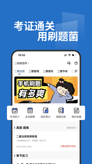 刷题菌,高效取证! #这些都是已经成功上岸的“小菌团”们对刷题菌的真实评价# --“题多、题好,可以真实的感知自己的备战水平,而不是盲目奋战。” --“每天强制自己多练习几道题,因为拥有这么方便的工具,让自己找不到懒惰后退的借口。” --“其实有些简单的考试不需要做那么详细的解析,因为只要记住题目答案就可以通过考试了,但是既然小菌做了,那我们就乐享其成吧!” --“原来神器的定义是:好多考试的题目都似曾相识。” --“匠心之作。” #这些都是你可以在刷题菌里获得的真实体验# --“操作界面如丝般顺滑。” --“界面美观、界面美观、界面美观,喜欢的优点说三遍!” --“原来刷题菌提供的是一站式、一条龙以及一流的学习复习新体验” 刷题菌是一款专注于职业考试的应用型APP,主要致力于为广大在职人员提供方便高效的学习工具,塑造见缝插针式的学习方式,培养日积月累的良好学习习惯,帮助大家顺利通过本行业内的职(执)业资格考试,成功获取证书。 刷题菌,内容涉及并涵盖工程类、医疗类、财会类、教师类、司法类、证券类等行业职业资格考试,应用内整理归纳了大量练习题库及高质量真题,对每一道题均力争做到精致有深度的解析,帮助考生理解考点、背诵记忆知识点。 刷题菌,专心、专注、专业为您服务!修复了已知问题