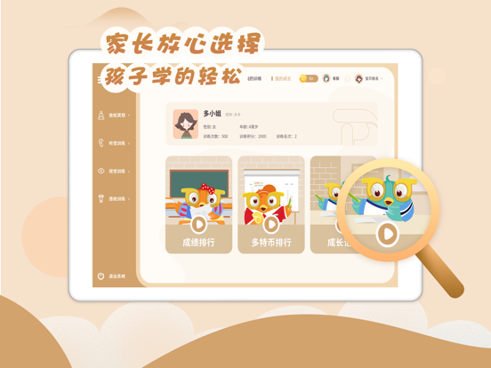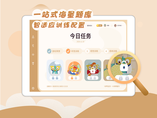 多特巩固训练是多特儿童专注力线下训练“感统+专注力训练”的配套线上训练,训练内容包括冥想训练、听知觉训练、视知觉训练及感统训练4大模块,是一款适用4-12岁儿童的专注力家庭训练项目。 个性化配课:根据儿童的专注力测试结果进行一对一自动匹课,符合儿童的能力最近发展区,提供有针对性的专注力解决方案。 海量题库:题库素材种类庞大,按照每一题不同的生成规则由系统自动生成题库,减少题库的重复率,大大提升训练的趣味性。 丰富体验:线上课程的界面配色舒适,素材色彩丰富;各功能操作简单便利,感统训练更有视频指导;训练及时反馈,展示训练进展,激发儿童主动训练。1、优化API接口。