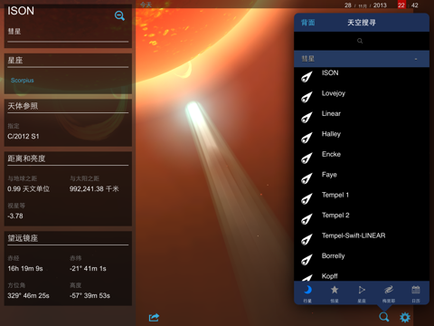 下载星图并了解为什么有 1400 万人在使用星图 在你的口袋中现在有一张虚拟星图!透过iPhone*的眼睛仔细瞧,可看到一个虚拟窗口一直延伸到整个可见的宇宙。 需作的所有工作只是将你的iPhone*指向太空,该星图将准确地指出你正在观看的天体。 采用最先进的GPS技术、精确的3D宇宙图,以及iPhone的所有高技术功能,该星图可实时计算地球上可见到的每颗恒星和行星的当前位置,并指出它们的准确位置,即使在光天化日之下! 想知道那颗明亮的星星叫什么吗?用你的iPhone指向它---可能会发现它是一颗行星! 想知道夜空在位于地球另一半的人们的眼中像什么吗?只需将你的iPhone往下指! 想知道你的星座在天空的什么地方吗?该星图将会告诉你所有情况,还将告诉你更多的事情。 星图的功能包括: - 只需指向和观看。不需要卷屏就能发现你正看到的东西*。 - 或者,动动手指也能观望太空----非常适合于坐在轮椅上的天文学家! - 支持动态的iPhone定向观测。使你可以以任何角度握住iPhone来观看太空。 - 准确地描述南北半球所有可见星球—总共达2000000多个! - 显示太阳系的所有行星,加上太阳和月亮。 - 显示所有88个星座,以及基于17世纪天文学家约翰·赫维留杰出作品的星座意象。 - 包括完整的梅西耶天体目录中宇宙深处的奇异天体。 - 将这些流星添加到星图上,包括所有主要流星雨整年的日期和位置。 - 此更新解锁能够跟踪在夜空中,包括哈雷彗星彗星的位置。 - 因为他们通过跟踪卫星 - 只需敲击屏幕中天空的某部分,就可获得所看到天体的有关情况,包括其距离和亮度。 - 极为强大的缩放功能,凭直观动动手指,就使你可以观看到太空的详尽之处。 - 配置性完整。该星图只显示你感兴趣的太空天体。 - 可人工地设置你的位置以发现地球各处的太空像什么样。 那么,请将你的iPhone指向太空,看看有些什么! ------------ Escapist Games 将定期更新该星图,所以请将你的反馈意见和功能要求告诉我们至starchart@escapistgames.com。 对你迄今所有的反馈意见深表谢意! *iPhone 3Gs / 4 & iPad具有增强现实功能,因为该功能需要内装罗盘。所有其他设备都支持人工卷屏。 请在推特网上跟踪该星图的最新动向: StarChartApp - twitter.com/StarChartAppApple 已更新此 App 以显示 Apple Watch App 图标。 各种固定小错误