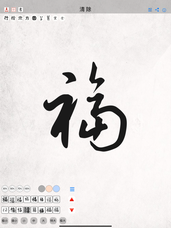 【书之道】是一款在手机和平板电脑上进行书法练习和书法创作的应用。 只要打开APP,就能自由挥毫,感受书法的独特魅力。 学习书法,传扬中华民族传统文化! ◉独家算法,运笔如飞,自由挥毫,确保流畅 ◉支持3D Touch、Apple Pencil、iPhone系列、iPad系列硬件 ◉APP包含:行书,楷书,草书的尖豪笔头,隶书,篆书的圆毫笔头,以及方体,圆体,中空,金属艺术字创作风格 ◉极小,微小,小,中,大,特大,极大:7种粗细不同的笔尖设计,切换自由 ◉巧妙变化书写速度,能够创作虚实相生,气势贯通的章法 ◉支持米字格,田字格,竖线字帖,宣纸背景设置 ◉随时随地分享您的创作给好友,或者保存到相册,支持AirDrop传送到其他手机和电脑 ◉支持滑动调节粗细,起笔落点的大小,书写速度 ◉16种书法字体模型,适合各种字帖临摹 ◉您可以调整字帖的透明度和字体颜色 ◉以下是最新增加的字帖: ・中文常用汉字2175字,日文常用汉字2135字的临摹字帖 ・碑文字帖:兰亭序,多宝塔碑,九成宫醴泉铭 ・经文字帖:般若波罗蜜多心经,金刚般若波罗蜜经 ・古诗词字帖:精选唐诗306首 ・日本和歌集:万叶集・原文,万叶集・训读,各20卷 ・习字库:日本小学1年级到6年级的教育词汇,假名五十音 ・习字库:日本汉字检定10级到1级范围 ・习字库:280组人气词组 感谢您关注我们的应用。 期待您的点评和宝贵意见,我们会长期坚持对应用的维护和更新,大家可以放心使用。 作者本人也是书法爱好者,欢迎大家邮件微信联系交流。・适配 iPhone 13 mini机型 ・改善了设置画面的可操作性