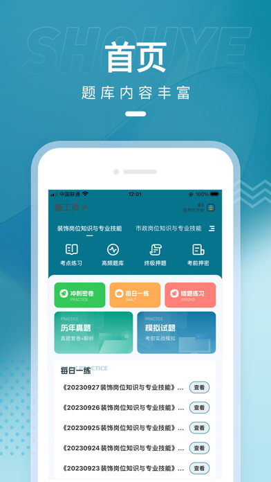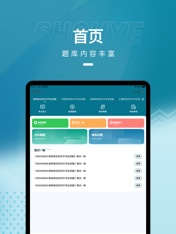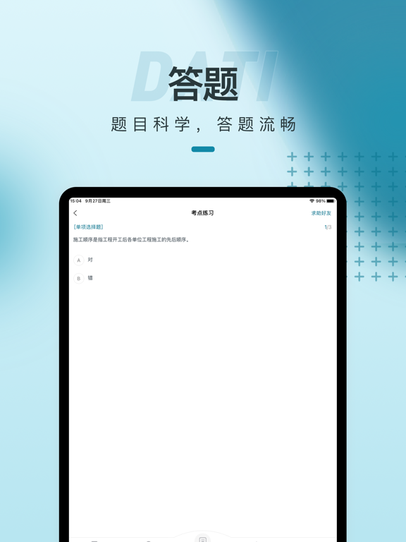 八大员准题库App精心收录建筑类八大员考试试题,涵盖了该考试热点、难点和常考点的考试模拟题库,八大员考试包含安全员ABC、施工员、质量员、标准员、材料员、机械员、劳务员、资料员、监理员、试验员、测量员、预算员的所有知识点及历年真题、模拟试题、押题预测,且题库内容实时更新,助力考生灵活利用零碎时间,听课刷题,效率备考! 【每日一练】每日随机测试,检验八大员考生学习水平、复习成果。 【章节练习】题库内所有科目的章节练习均可随学随练。 【历年真题】收录近几年八大员考试真题,与考试亲密接触。 【高频题目】大数据分析八大员考试高频题目,备考重点难点一应俱全。 【错题巩固】独特错题巩固功能,清除建筑八大员备考路上的顽固障碍。1.优化用户体验; 2.修复已知bug;