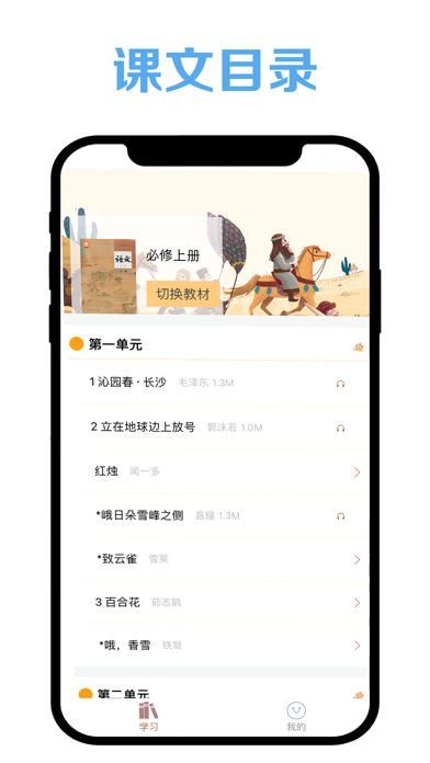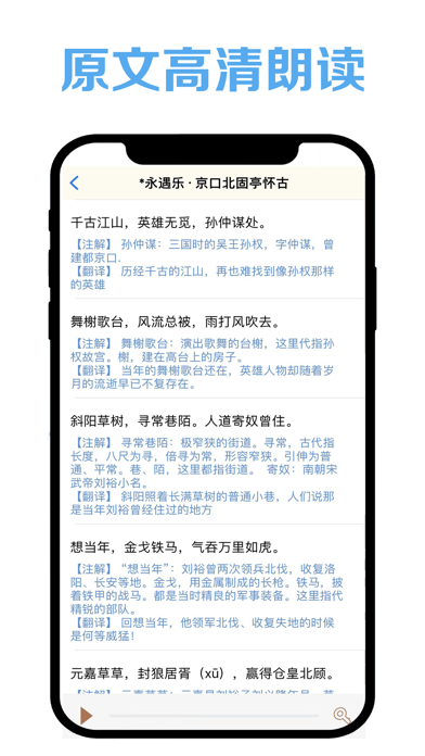 【课本诵读】好听的语文课本。优秀播音员录制,标准示范诵读。教材版本:人教部编版、人教版。 【文言文解读】同步教材课下的注释;原文、译文逐句对照;重点的字词标注详解;文章背景、主题思想、写作特色等全解全析,让你轻松理解文言文,轻松学好文言文。
