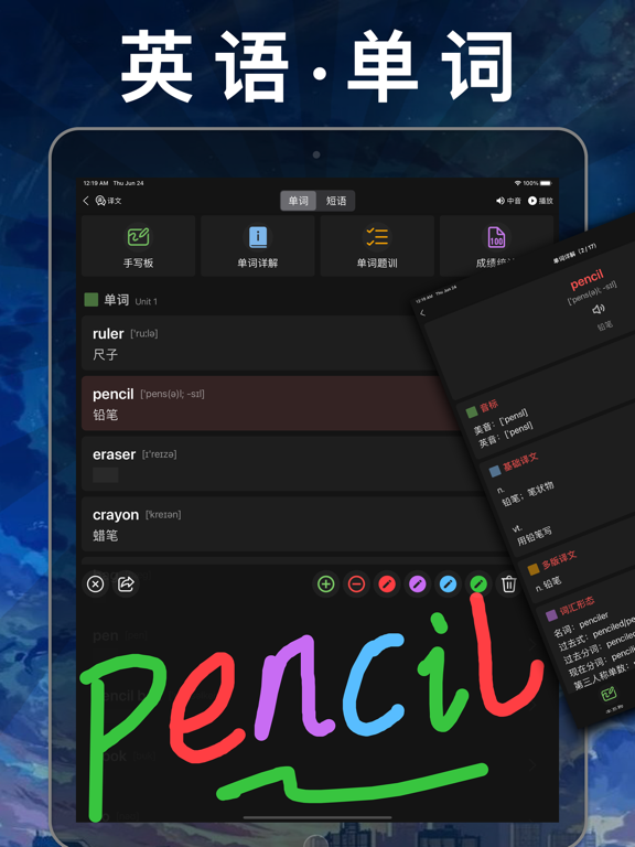 为您的孩子,不仅可以同步校内教学进度,而且帮助孩子形成良好的自主学习习惯。再也不用担心宝贝沉迷手机了。 适配暗黑模式,晚上学习不伤眼~ 好爸妈点读,好爸妈点读,爱点读,学习助手! 【产品特色】 1、点读复读、全屏手写; 2、英语词典、收藏夹、生词本功能; 3、汉语字典、拼音、笔画、边旁部首搜索功能; 4、词典、成语词典、搜索功能; 5、古诗文搜索、诗人搜索等功能; 6、小学语文同步学、笔画笔顺书写练字功能; 7、小学英语单词听力拼写训练。 8、以下更多: 点读功能:点到哪里读哪里,点读翻译样样行,孩子跟着一起读,在轻松快乐中学习。 趣配录音:点读课文,自行录音,有趣的配音功能,为课本配音! 单词手写:手写板,让孩子多多练习英文书写 生字训练:手写板,拼音练习、笔顺笔画书写 词语测验:记录学习单词短语,图标统计,让进步有个见证! 学习成就:图表统计学习情况,孩子的学习情况、训练成果五目了然。 (学习成绩记录:课文学习、学习时长、单词学习、单词训练) 多种记生字单词的方法,完备的“听说读写”。 激发孩子学习兴趣、锻炼逻辑思维、全方位拓展提升。 【产品特点】 包含人教、湘少、北京、苏教、译林、外研等版本教材同步。 人教版小学语文、数学、英语:新起点、PEP、精通版、小学英语一起点、三起点、北京版小学英语 (后续不断新增教材) 【温馨提示】 iPad和iphone设备兼容。 小学英语紧贴全国小学生同步教材所设计的学习辅助软件,软件包含课本点读、听课文、学单词、口语等功能于一体。 人教版点读app人教点读app外研点读app 【会员自动订阅服务说明】