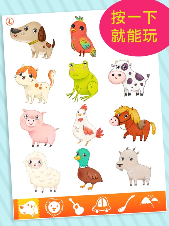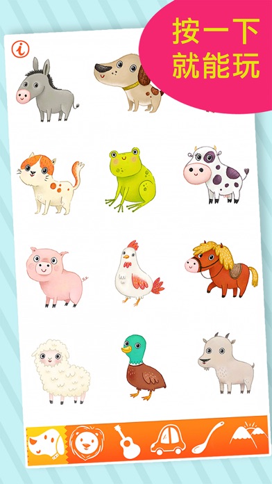 简单地按一下,就可以看到许多图片及听到各种声音。通过 135 种涵盖动物、乐器、车辆等方面的声音和图像锻炼孩子的触觉、视觉和听觉。 只需轻按一下某个动物或物品即可看其图像,听其名称,观其拼写。 这是为小朋友的游戏时间所准备的一款完美学习工具。 一启动应用程序,马上直接开始游戏 - 安全而简单。 屏幕上的可爱插图极具吸引力,底部的选项卡允许你在各类别之间迅速跳转。 轻按一张图片将显示该动物或物品现实生活中的照片,并可听到他们发出的声音! 不仅如此,每个动物或物品都有 5 个真实的图像和声音让孩子们保持兴趣。 高清晰度的图片明亮而生动,声音质量亦极佳。 我们提供了 6 类图片 - 包括家养动物、野生动物、乐器、车辆、家用物品和风景名胜 - 这些精彩的图片将满足孩子们的好奇心而总是令人爱不释手。 乐器类尤其可以带来许多乐趣。 每种乐器提供 5 种不同的的音乐曲子,还可能会让你跟着轻轻摇晃! 幼儿学声音 123 是一款全新的互动式识字卡,其特点包括: - 安全而易于操作, 轻按一下即可玩! - 适合孩子的引人入胜的学习环境,包括清晰又漂亮的图片和有趣的声音 - 135 张高清照片(完整版为 360 张),配有令人舒适的高质量声音 - 6 个类别,更多内容! 包括:家养动物、野生动物、乐器、车辆、家用物品和风景名胜。 - 风景名胜类的场景来自于世界各地! - 每个动物或物品提供 5 种不同的图像和声音以保持新鲜感 - 儿童安全锁可以防止小朋友意外修改设定,让孩子独立自由地玩 -------------- 联系我们 访问我们:http://www.GiggleUp.com 成为粉丝:facebook.com/GiggleUpApps 关注我们:twitter.com/GiggleUpApps 邮件联系:Support@GiggleUp.com 连连看探险之旅 由 GiggleUp 开发,我们还为孩子们开发了获奖的“我会看时钟 - 互动式学习时钟”应用程序以及其他教育应用程序。 我们的目标是通过游戏促进学习,帮助孩子们养成有用的学习技巧。 我们的应用程序深受孩子们的欢迎,在世界各地的教室中广泛使用!- Fixed a crash issue on loading screen - Performance and bug fixes