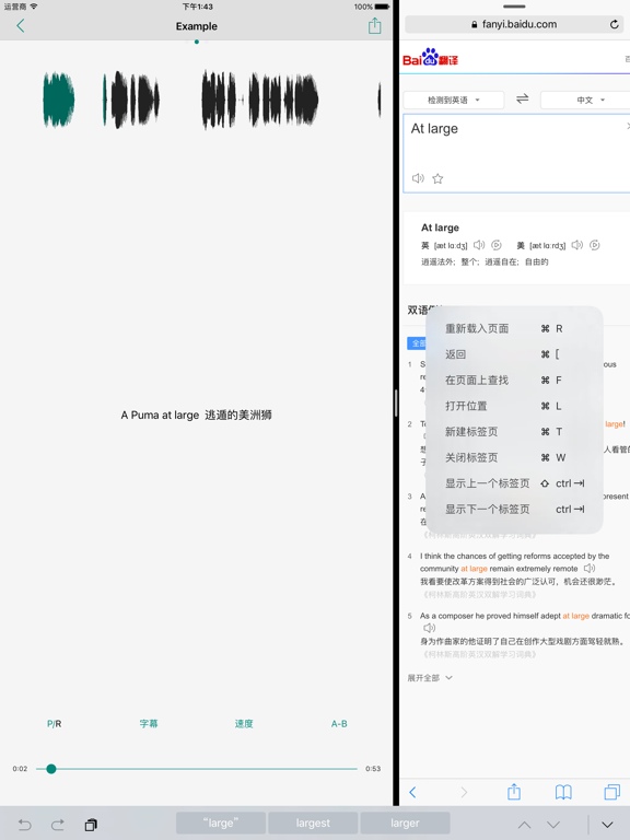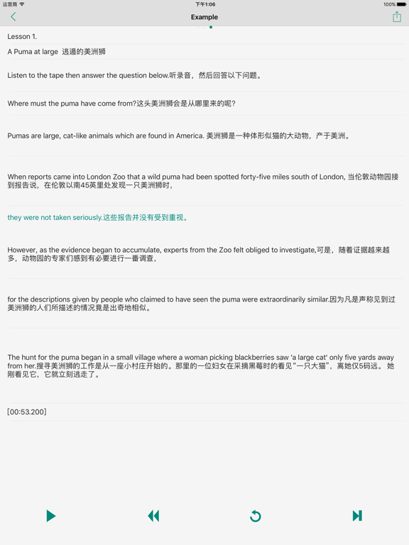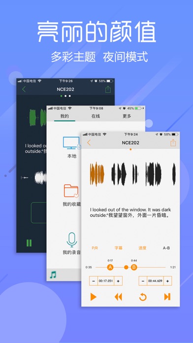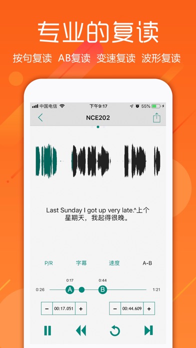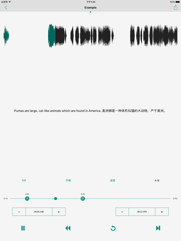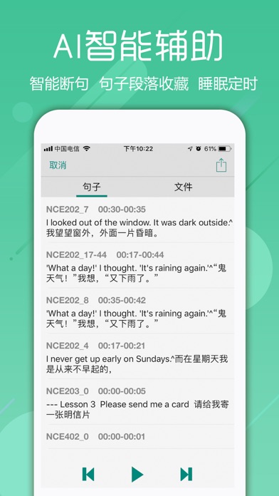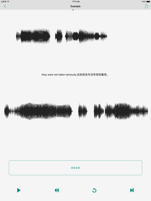 先说一下为什么收费? 1:点滴复读机是专业的软件复读机,专门为英语听力练习而设计,提供了超越传统复读机的功能体验,对您的英语听力口语学习会有很大的帮助; 2:会免费共享一些英语听力学习资源; 3:点滴复读机是精心设计的产品,没有广告或其它花样功能,给您一个清静、简单而高效的学习环境; 介绍: 点滴复读机是一个让您的手机变成复读机的软件(有点像磁带式复读机而功能体验更强),是一个专门用于学习英语听力和口语的软件。 使用点滴复读机学习英语听力,您可以设置每个英语句子复读的次数、播放时的速度及每个句子播放结束后的停顿延时等,通过自动重复性播放,真正听懂每一句英语,快速提高英语听力。 以提升英语听力,听懂每句话为目标,点滴复读机提供了简介方便的操作模式,比如在点击长按一句话后,点滴复读机将会自动重复地播放此语句。 英语听力水平的提高,重复性听懂每一句是很有效的学习方式,点滴复读机也是您重复性地练习英语听力和口语的好帮手。 功能特性: 1:单句复读: 实现以句子为单位练习英语听力,可以重复地听一句话,专治您的听不懂; 2:AB复读: 实现对任意两点间的内容进行复读; 3:变速复读: 可以调节播放速度的快慢,以更清楚或快速地练习英语听力; 4:声波复读: 复读时实时显示音频波形图,可视化地纠正查看发音; 5:智能断句: 智能AI分隔句子断点,以实现单句复读;(即使没有lrc歌词文件,也可以单句复读) 6:句子段落收藏: 收藏句子或段落到复习列表,方便重点复习; 7:录音波形对比: 显示原音和录音的声波图形,以精准对比和纠正口语发音; 8:lrc歌词编辑: 方便新建或修改lrc歌词文件,双语字幕显示; 9:多彩主题、夜间模式: 精美UI设计,提供多种主题颜色切换;提供夜间模式以保护您的眼睛; 10:多层级精选听力资源: 提供新概念英语、VOA英语、新英语900句、雅思口语、英语歌曲、英语影视演讲等多种资源下载; 也可以导入您自己的音频资源进行学习(支持大部分音频文件格式);1:修改蓝牙耳机播放声音问题; 2:修改优化其它问题;