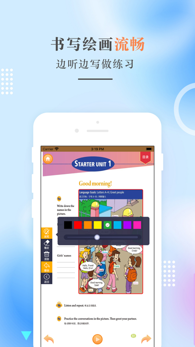 “好家长点读机”软件是一款随身方便携带的智能电子点读软件,完全同步课本教材,内容完全一致,双语发音,高清内容,能随时随地帮忙孩子更好的学习,是小朋友的好老师、好家长,也是AppStore上最适合孩子们学习的应用。 【功能特色】 1、完全同步教材制作,内容完全一致。 2、手势翻页,目录翻页,使用十分方便。 3、能写能画,能点能读,用心帮助孩子学习。 4、界面美观流畅,用心制作每一个细节,操作简单直观。优化部分功能,体验更加流畅