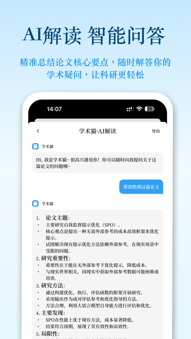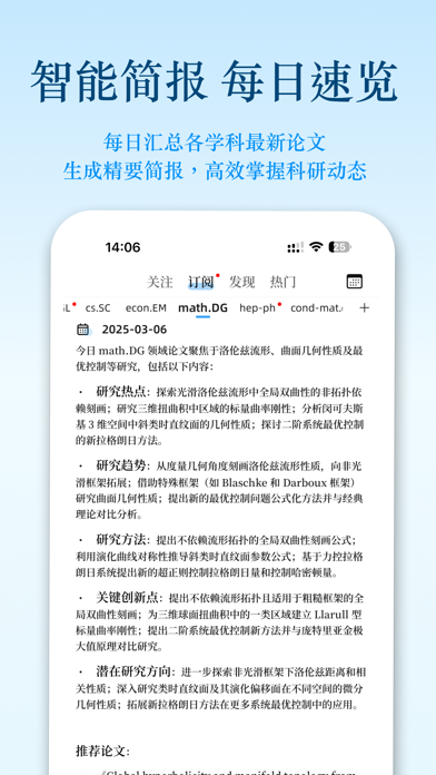 界面特别清晰和干净,比其它APP界面简洁,每天打开都能迅速浏览今天更新的论文 -- Alan 南开大学 每日简报简直了!一眼了解今天人工智能领域都更新了啥 -- 安安 新加坡国立大学 最满意的是收藏的论文可以自动同步到iCloud云盘 -- 冯超 上海交通大学 目前是长期订阅用户,在和开发者反馈iCloud同步功能需求后,马上得到回应,今天上架了!特别好的程序,每日扫arxiv必备! -- 匿名 阅读体验感很好,学术论文下载很快,不再需要去网站上看了,还有导读功能很好用!超赞 -- 占军 中国科学技术大学 以上都是收到的真实用户反馈 ------------------------- 学术猫 - 之前已经习惯了在PC端刷刷arXiv官网,总觉得需要一款手机端APP,方便在地铁通勤、吃早饭、午休时也随手看看今天我的专业都有什么进展,所以我开发了这款主打便捷和智能的arXiv科研论文智能阅读器 主要功能: AI导读: 基于人工智能自动总结论文的主题、研究方法、创新点及局限性,帮你迅速掌握文章精髓。 每日追踪:根据订阅的学科主题,及时为你推送最新的科研成果,确保你始终站在学术前沿。 中文支持:自动将论文标题翻译为中文,更便于阅读,支持一键翻译文章摘要。 一键发送:文章可以一键发送至邮箱,方便你随时随地阅读。 优化PDF加载:大幅优化国内访问速度,提升PDF加载体验,快速翻阅文献。 收藏和离线存档:支持收藏感兴趣的论文,并可进行本地离线存档,随时查看。 ------------------------- 【支持的 arXiv 相关学科】 -物理学 (Physics) -数学 (Mathematics) -计算机科学 (Computer Science) -定量生物学 (Quantitative Biology) -定量金融 (Quantitative Finance) -统计学 (Statistics) -电气工程与系统科学 (Electrical Engineering and Systems Science) -经济学 (Economics) 感谢 arXiv 提供的开放访问互操作性。本产品未经过 arXiv 审核或批准,也不一定表达或反映 arXiv 的政策或观点。 用户许可协议(EULA):https://www.apple.com.cn/legal/internet-services/itunes/cn/terms.html ------------------------- 【学术猫 Pro会员服务说明】 【连续包月会员说明】 1.订阅周期:一个月 2.订阅价格: 每月12元 3.付款:用户确认购买并付款后记入iTunes账户 4.取消续订:如需取消续订,请在当前订阅到期24小时以前,手动在iTunes/Apple ID设置管理中关闭自动续订功能 5.续订:苹果iTunes账户会在到期前24小时内扣款,扣款成功后订阅周期顺延一个月 6.隐私政策:https://ver133tlfd.feishu.cn/docx/BDZzdZqczo2277xYbKecv1jOn6h 7.用户服务协议:https://ver133tlfd.feishu.cn/docx/BDZzdZqczo2277xYbKecv1jOn6h 【连续包年会员说明】 1.订阅周期:一年 2.订阅价格: 每年108元 3.付款:用户确认购买并付款后记入iTunes账户 4.取消续订:如需取消续订,请在当前订阅到期24小时以前,手动在iTunes/Apple ID设置管理中关闭自动续订功能 5.续订:苹果iTunes账户会在到期前24小时内扣款,扣款成功后订阅周期顺延一年 6.隐私政策:https://ver133tlfd.feishu.cn/docx/BDZzdZqczo2277xYbKecv1jOn6h 7.用户服务协议:https://ver133tlfd.feishu.cn/docx/BDZzdZqczo2277xYbKecv1jOn6h新增「教育优惠」功能,学生与教育从业者可享专属折扣; 支持「微信登录」,一键登录更方便; 同时优化了界面细节,让体验更加流畅。