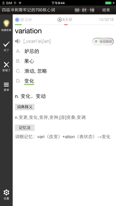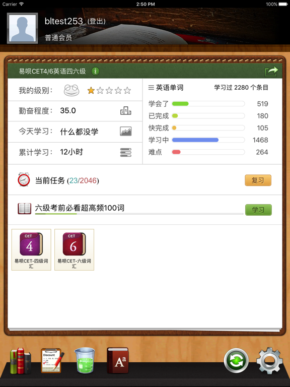 《易呗背单词-四六级专用版》精选全国大学英语考试四、六级词汇,依托《易呗背单词》强大记忆引擎,结合了易呗网(www.yibei.com)云存储功能,是一款特为四、六级考生用户量身定做的软件。 产品特点: 1. 与《易呗背单词》相同的记忆引擎、使用方法; 2. 精选四、六级必备词汇; 3. 学习记录管理,智能复习规划,支持课本以及学习记录播放功能; 4. 内置多种记忆法与例句; 5. 内置易呗词典,可以在例句中查词典; 6. 简单易用的测验工具。本产品维护期即将结束,推荐使用换代产品“易呗单词”(去掉了背字)。 修复一些Bug。