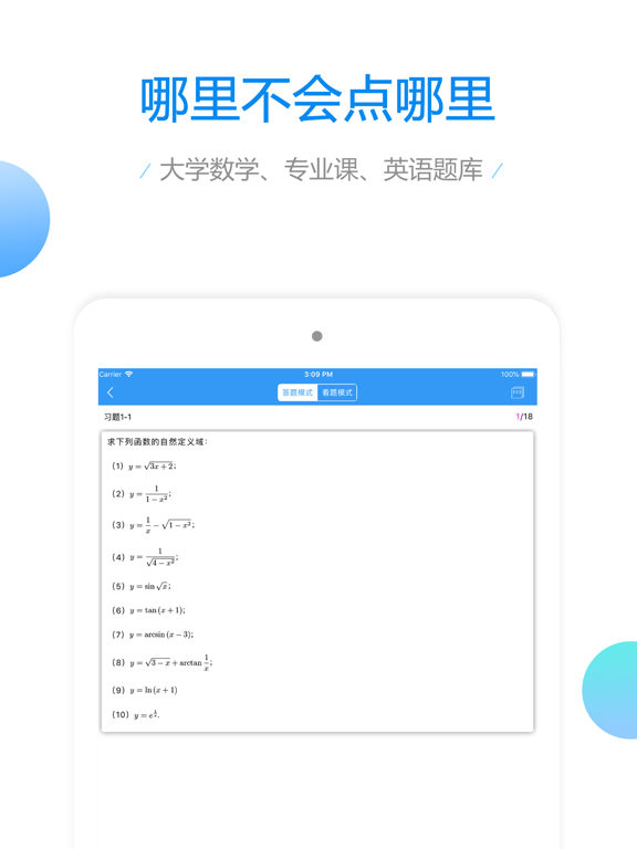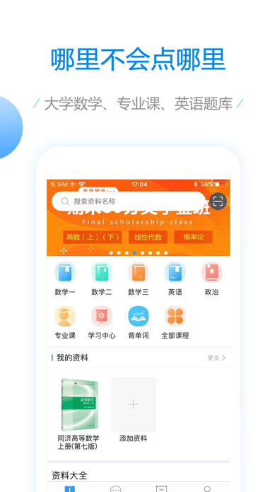 高数,线代,微积分真题答案看不懂?大学数学到底该怎么学? 大学数学,一款为帮助学生学习大学数学量身打造的在线学习APP。致力于帮助大学生解决学习上的难题,涵盖了大学生学习所需的各专业学习资料。诚邀考研数学一线教师:李正元、李永乐、陈文灯联手合作。专家思路解析,灵活剖析考题,还原考点让学生全面掌握解题方法。 还在为大学期末考试发愁?来大学数学,学习从未如此简单! 【简介】 大学数学是由慧升教育推出的一款在线学习APP。慧升教育,中国在线教育的先驱者,自成立以来陆续推出:高考,专升本考试,大学期中期末考试,英语四六级考试,考研,管理类联考,经济学双学位考试等多款在线学习APP。2020年慧升教育以全年累计下载100万荣获了2021年考研总人数的1/4的下载量。得到了社会的广泛认可。 【功能介绍】 1. 考研题库 考研题库由三大板块构成:历年考研真题,经典教材课后习题以及考研一线教师考研资料。 历年考研真题,涵盖考研数学一、数学二、数学三)、考研英语一、英语二、思想政治、数学(农)、西医综合、中医综合管理类联考等诸多科目真题,包括了2021年及2021年前三十多年的考研真题5万多道,试卷300余份。 教材课后习题,支持扫码搜书。专业课后习题百思不得其解?一扫条形码即出教材书籍,所学专业全覆盖,遇到难题无压力!如:同济版高等数学、线性代数、浙大版的概率论与数理统计、华东师大数学分析、解析几何、高等代数等数学教材,新视野大学英语系列读写教材以及马原毛中特近代史思修相关教材课后习题。 考研一线教师的考研资料,如:李正元考研数学复习全书(数学一、数学二、数学三)、李永乐考研数学复习全书(高数,线代,微积分、660题、汤家凤1800题、张宇1000题、陈文灯的考研数学复习指南,肖秀荣的命题人1000题,徐之明的考研政治红宝书等。题库永久免费,真正做到一款APP在手随时随地在线学习。 2.视频课程 高等数学,数学分析,线性代数,高等代数,微积分看不懂?考研政治重点在哪?考研英语长难句,5500词如何解决?慧升考研与权威老师强强联手,结合最新的考试大纲,历年的考试命题规律,以教材讲解为中心,以重难点突破为主线,推出了优质的考研讲解视频。专家级的解题思路,灵活剖析考点,让你全面掌握学习方法。 3.背单词 强大的词表,专四词汇,专八词汇,四级词汇,六级词汇,考研英语,MBA英语,雅思,托福,BEC,SAT ,GRE,GMAT,托业...同时提供单词发音,记忆方法,词源,同义词反义词,英语释义,英语例句等,根据自己的实际能力定制学习计划。支持单词本导出功能,强化单词记忆。可保存学习进度,换手机后接着学。 4.考研论坛 诚邀一线教师入驻APP内论坛,当你在学习当中遇到疑难问题,就可一键呼叫在线答疑老师帮你解答。 【适用范围】 1.课后习题无头绪?就用大学数学答疑解惑! 2.专业教材课后习题不会解?就用大学数学APP帮你解决! 3.适用于:大学生期中期末考试,管理类联考,经济学双学位考试,法硕考研,西医考研,医学考研,中医考研,计算机考研,力学考研,心理学考研,经济学考研,金融学考研,口腔考研,护理考研..... 【考研辅导】 应广大学生的需求,慧升教育针对考研的学生推出了高端精品一对一考研辅导,辅导内容包括了:考研数学、考研政治,考研英语,考研复试等等。欢迎有需要的同学致电咨询。 【我们的联系方式】 代理加盟热线:136815686521.最新考研资料更新 2.题库功能优化 3.修复了已知BUG