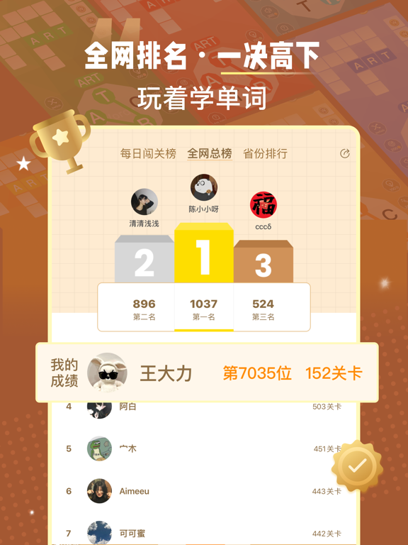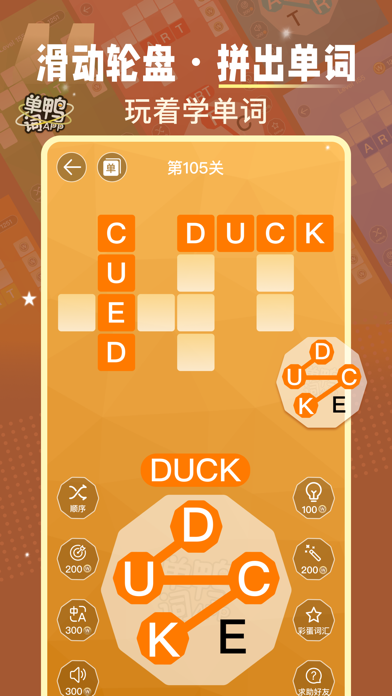 《单词鸭APP》是一款休闲的游戏化闯关学英语的应用软件,包含2款英语学习游戏: 单词消消乐&单词数独。像玩消消乐一样的消单词,像玩数独似的拼单词!摆脱传统枯燥背单词,在玩中不知不觉学会单词,玩多久都没有浪费时间的罪恶感。 游戏关卡的生成算法基于艾宾浩斯遗忘曲线,千人千面抗遗忘 【游戏化闯关·玩着学英语】 ●单词消消乐 · 像玩消消乐一样的消单词 ●单词数独 · 像玩数独似的拼单词,难度系数高 ●闯关过程中答错的单词,自动进入生词本 【海量词库&教材同步配套】 ●小学/初中/高中/四级/六级/考研/托福/雅思/托业/GMAT/GRE/SAT/职业英语...全阶段 ●小学/初中词库,多版本教材与课本同步,贴合学生校内课本单词 ●如果没有符合自己的词库,可自建词库 【单词卡】 ●左滑不认识,右滑认识,不认识的自动进入生词本 ●用单词卡学习任何语言,无论英语,日语,西班牙语等 【自建单词卡】 ●多种创建方式,可通过AI录入、EXCEL导入、单个录入、批量录入的方式创建自己的专属词库 ●单词卡不限语言和科目,如英语,西班牙语,日语,德语,语言学习、医学、法律、数学、社会科学... ●可以搜索并学习其他同学创建的单词卡 【生词本】 ●五大类别: 累积,认识,不认识,收藏,掌握 ●玩的过程中,遇到的单词,都会进入到生词本累积 ●答错的进入不认识,答对的进入认识 ●听说读写测试全达标的单词,进入掌握 【测评】 ●全方位测评听说读写的能力,只有听说读写都达标,才会进入到掌握 【单词PK】 ●单词游戏在线PK,一起学习有动力 【班级】 ●邀请朋友和同班同学一起学习单词 ●与朋友和同班同学之间分享自建的单词卡 【成长曲线,让成就看的见】 ●每天打卡学习,可以查看累计单词数,认识单词数,掌握单词数,累计通关数,今日通关数,成长变化看的见 ●用成长曲线记录玩单词历程,点滴积累清晰呈现,见证实力飞升 【休闲化&碎片时间】 ●每天10-15分钟即可循序渐进,通勤、排队、等待时间不浪费 ●动动手指就能消单词,像玩消消乐一样,指尖轻点,即享畅快 【词根记忆】 ●背单词太难?试试词根记忆,抓住单词规律,轻松记住一大串 ●别死记硬背单词啦!用词根记忆,记一个顶一群,词汇量飞涨 ●学单词有捷径!词根记忆法,让你一眼看透单词,背得又多又快 自动订阅服务说明 1.订阅服务: 单词鸭VIP连续包月(1个月)、单词鸭VIP连续包年(12个月) 2.订阅价格: 单词鸭VIP: 连续包月产品为98元/月,连续包年产品为998元/年 3.付款: 用户确认购买并付款后计入iTunes账户 4.自动续费: 苹果iTunes账户会在到期前24小时内扣费,扣费成功后订阅周期顺延一个订阅周期 5.关闭服务: 您可以在苹果手机“设置”-->进入“iTunes Store与 App Store”-->点击“AppleID”,选择"查看ApplelD",进入"账户设置"页面,点击“订阅”,管理自动订阅服务,如需取消,每个计费周期结束前 24小时关闭即可,到期前24小时内则不再扣费 6.服务协议: 会员服务协议: https://zhcn.api.wordln.com/tomato-word/about/vip.html 7.隐私协议: 隐私协议:https://zhcn.api.wordln.com/tomato-word/about/privacy.html单词消消乐&单词数独&单词卡