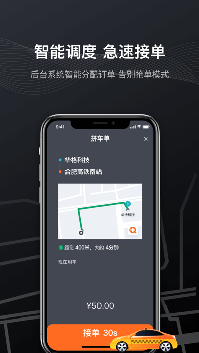 快步打车是安徽华格科技基于多年来在道路运输领域的行业经验,联合全国出租车企业共同推进巡游车转型升级的一款产品。快步打车将实现巡游车向网约化、动态调价功能、顺路拼车出发运营模式转型。快步打车为每一位巡游车司机提供专属二维码,一车一码,精准拼车,交接班顺路接单,减少空驶率,提高司机收入。优化新订单弹窗和接单大厅。