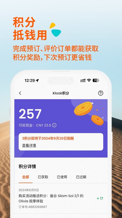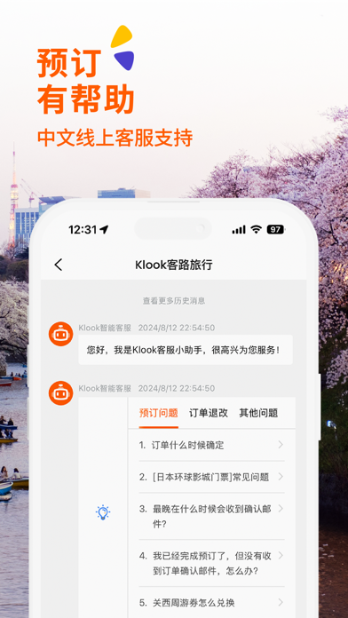 下载Klook App,随时随地规划及预订你的旅行! 成立11年,汇聚全球目的地旅游服务,无论是景点门票、一日游、地道玩乐、当地交通、铁路通票、海外酒店、包车服务、还是当地美食等特色体验,Klook致力于一站式满足你的自由行全方位需求。无论是日本韩国、东南亚、欧美、澳洲新西兰、中东,哪里有玩乐,哪里都有Klook! 探索无限可能的世界: · 景点门票: 预订景点门票,享超值优惠,扫码入园节省宝贵时间 · 便捷交通: 境外铁路巴士|刚需交通卡|包车|机场接送 一站解决 · 一日游: 探索丰富地道行程,靠谱省心,P人友好,开启精彩出境游 · 特色体验: 从户外极限运动到文化艺术体验,发现适合你的特色玩法 · 海外酒店: 轻松预订全球目的地心仪住宿,从经济优选到度假体验 值得信赖的高分活动: 1,100万+ 真实用户评论,中文客服支持。计划出境游?寻找海外酒店?想预订热门门票或独特特色体验?探索klook为你精心挑选的旅行产品,获取独一无二的旅行灵感。 轻松便捷的预订体验: 享受快速高效的电子预订,部分景点提供即时确认和免排队门票。无论你是在规划出境游的酒店住宿,预订异国特色体验,还是在寻找周末的本地门票与玩乐,只需指尖轻点,Klook让你轻松一站式预订。 值得信赖的高分活动: 1,100万+ 真实用户评论,中文客服支持。计划出境游?寻找海外酒店?想预订热门门票或独特特色体验?探索klook为你精心挑选的旅行产品,获取独一无二的旅行灵感。 轻松便捷的预订体验: 享受快速高效的电子预订,部分景点提供即时确认和免排队门票。无论你是在规划出境游的酒店住宿,预订异国特色体验,还是在寻找周末的本地门票与玩乐,只需指尖轻点,Klook让你轻松一站式预订。 解锁Klook Rewards白金会员,尊享专属福利 - 赚取高达5倍Klook积分 - 获得最高250美元优惠券 - 享受客服优先服务 - 解锁会员独家价格 当你作为Klook黄金会员消费满1500美元,即可升级至白金会员,提升你的Klook体验。 请查看以下方式或平台了解更多吧! -官方网站:https://www.klook.cn/zh-CN/ -微信订阅号:Klook客路旅行 -抖音:Klook客路旅行 -小红书:Klook全球玩乐预订 有建议想对我们说?欢迎通过 appfeedback@klook.com 与我们联系,让我们变更好!我们改进了界面设计,修复一些系统错误,优化部分功能,使用过程更顺畅!无论是寻找本地新体验或出国旅游,Klook都能带您轻松探索不一样的玩乐世界! 我们致力于改善用户体验,觉得Klook App体验感如何?欢迎留下评价~ 有任何建议对我们说吗?请通过appfeedback@klook.com联系我们,让我们不断改进!