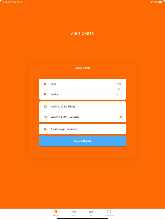 寻找廉价航班? 我们的应用程序可以为您提供帮助!我们提请您注意搜索和预订廉价航班,酒店和租车的有用应用程序。我们与全球700多家航空公司合作。该应用程序可帮助您找到更实惠的预算选项。该应用程序允许您购买国际和国内航班以及热航班的廉价机票。通过与廉价航空公司的合作,您将有机会直接从公司的网站预订航班。 该应用程序使您可以享受无限的折扣和促销优惠,以及许多奖励,这使我们的应用程序对用户特别有吸引力。廉价机票会比较所有方向,航空公司和路线,为您提供飞往目的地的最便宜航班。我们一直在寻找方法,使您更轻松地找到所需的最便宜的航班,酒店和租车。因此,我们向所有国家/地区的国家/地区,城市和机场的客户展示最低的航班。看看我们飞往主要机场及其以外地区的廉价航班!预订机票仅需一分钟,这要归功于通过廉价机票进行的全面,快速的预订。应用程序界面非常人性化和直观。预订便宜的机票。如果您的旅行日期灵活,我们将为您提供更多优惠。换句话说,您将有更大的机会找到想要的这种超便宜航班。考虑其他机场。输入出发地和目的地之后,我们将为您显示您路线的完整交易清单。不要忘记看到附近有其他机场的航班;这可以帮助您降低关税。按日期搜索。如果您不能更改旅行日期,请不要担心。要查看当前的机票价格,请在搜索字段中估算您的航班大概日期。我们提供24/7全天候客户支持,就任何感兴趣的问题提供建议。我们想提请您注意以下事实:我们不出售机票,而是为购买机票的网站提供最便宜和最有利可图的报价。这是非常重要的一点,因为我们仅提供有关机票搜索的信息。 考虑到用户的愿望和建议,我们一直在不断改进应用程序,使其更加方便实用。我们接受您的意见和建议。查找价格合适的最佳航班。 ***注意:此应用程序可帮助您找到廉价航班。重要提示:我们不出售机票。我们寻找最优惠的机票价格,并带您到代理商网站预订机票。 祝旅途愉快!• Improved design • Added new functions • Bug fixes