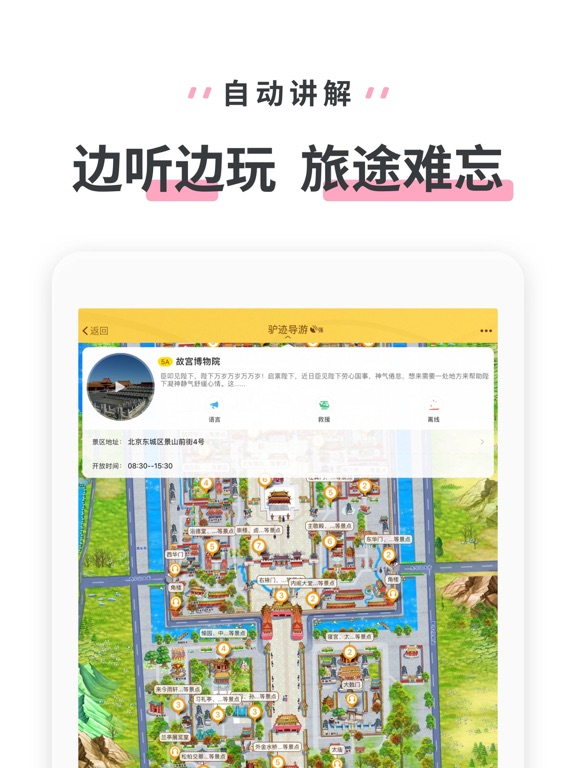 去旅游,试试驴迹导游。 覆盖全球40000+旅游景区、博物馆、网红景点、旅游胜地,根据定位自动讲解,用简单便捷的方式让您获得专业、趣味、有深度、有内涵的旅行历史文化知识,一台手机游全球,是您贴心的私人导游。 驴迹导游是全球领先的手机导游景点讲解软件,宗旨在于为游客提供专业、权威、便捷、丰富、有趣的景区导览以及旅游攻略。驴迹导游已为全球数千万游客提供精彩的景点历史文化讲解服务,广受旅客好评。 我们与国内外的旅游景区达成合作,聘请资深导游老师提供有趣有内涵讲解稿,专业录音员录制,进行实地采编景区建筑绘制地图,目的是让游客便捷的获取有趣、准确、有深度的景点讲解以及丰富的旅行攻略。 【驴迹导游的核心功能及亮点】: 覆盖全面:覆盖全球大小40000+旅游景区,驴迹在手,轻松旅游。 内容专业:官方合作内容,资深导游演绎,讲得明明白白,听得妙趣横生。 名人播音:专业知名大咖录制景点语音讲解,融情入景,余音绕梁。 智能讲解:创新算法,精准自动定位触发讲解,仿佛私人导游伴随您。 精准地图:量身绘制的精美景区旅游地图,轻松看懂,不怕迷路。 路线推荐:官方推荐的专业游玩路线、深度体验玩法,玩转景区不留遗憾。 设施导航:景区出入口、餐厅、商店、停车场、卫生间等设施一目了然。 交通攻略:最新交通向导,快捷到达景区,节省时间玩得更开心。 离线数据:提前下载节省流量,无信号也能使用,为您尽心贴心。 【联系我们】 如对驴迹导游有任何建议或疑问,请联系我们: 驴迹官网:http://www.lvji.cn 官方微信:驴迹导游 客服电话:400-870-03011.修复bug