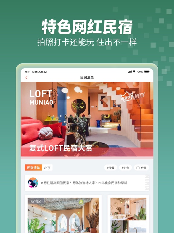 木鸟民宿是国内老牌的短租房、日租房、民宿在线预订平台,于2012年5月正式上线。目前平台覆盖海内外700多个城市,主要分布在北京、上海、重庆、天津、青岛、秦皇岛、三亚、大连、威海、日照、烟台、厦门、承德、大理、北海、深圳、沈阳、成都、苏州、杭州、西安、广州、长沙、昆明、南京、武汉、郑州等城市,拥有135万套房源,累计服务用户1亿+,无论你走到哪里都能找到合适的住宿房源。 不同于连锁酒店的标准化住宿,我们为用户提供更有调性的住宿体验,包括:民宿、客栈、家庭旅馆、短租房、日租房、短租公寓、别墅、主题酒店等,还可满足洗衣做饭等需求。无论您是家庭出游,出差旅行,异地求职求学,都能找到合适的房源。 在这里 海量房源任你选,全国及海外热门旅游城市全覆盖。周末游周边游住宿预订性价比之选。 一键定位找身边:一键发现附近房源,方便快捷,房源真实可靠。订房从未如此简单。 随心掌握放心住:移动APP方便快捷随时随地随心订房看房,更有木鸟民宿千万资金房客保障计划陪伴,放心入住! 特色房源任你挑:我们精选木屋、别墅、海景房、LOFT、主题特色房等特色民宿,让您的出游别具一格。 世界很大等你发现:分享您的故事可以赢取租币,租币可以抵现使用,让您的旅途回忆满满。 异地出行再无忧:青岛、三亚、秦皇岛、大连、杭州、丽江.........到了这些热门旅游城市不知道玩什么?我们的房东是不折不扣的本地人,愿为您一尽地主之谊。 选择木鸟,一间房,一种生活。上木鸟,挑你喜欢的住。 ----------------------------------------------------------------------- 联系我们 官方网站:www.muniao.com 新浪微博:木鸟民宿 公 众 号:木鸟民宿 木鸟客服:400-056-0055优化用户和商户体验,提升产品稳定性。