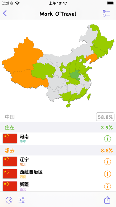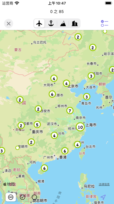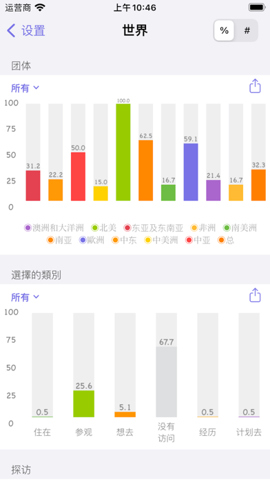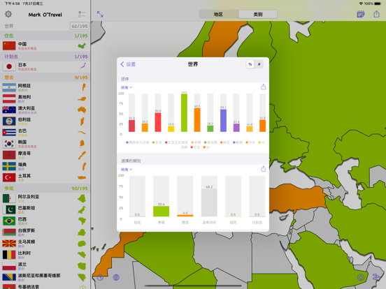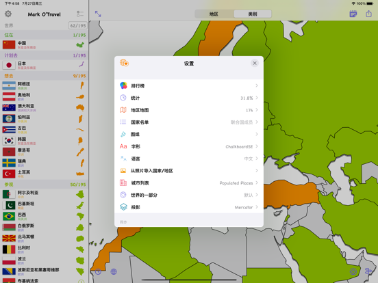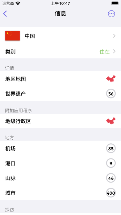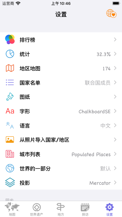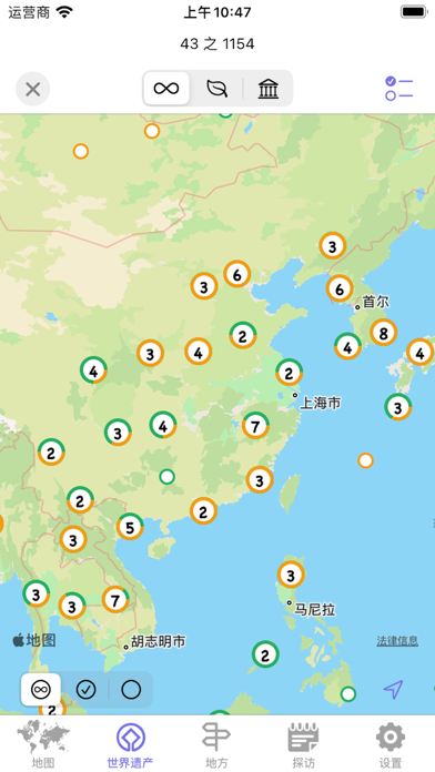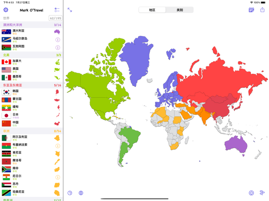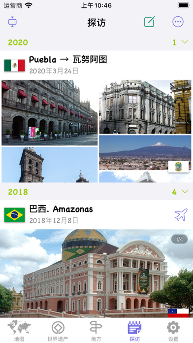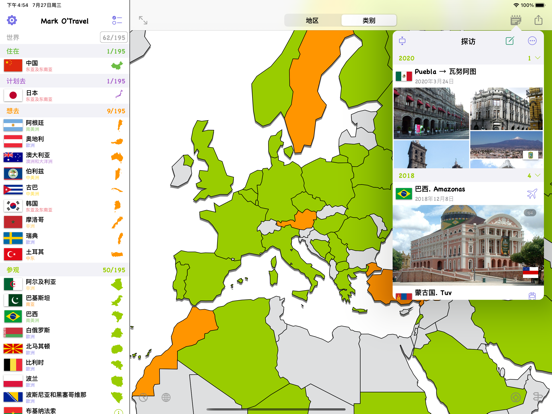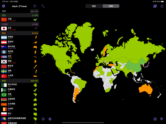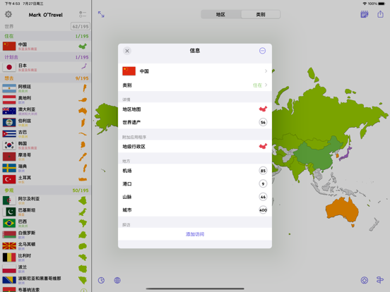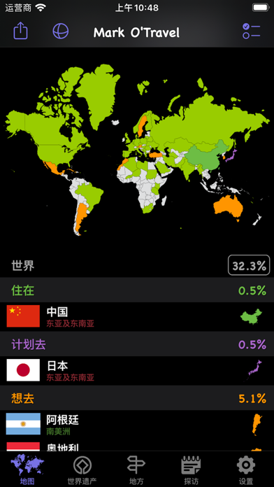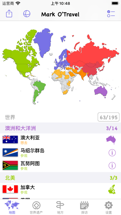 —可以标记已经去过的国家和地区; —世界遗产名录;