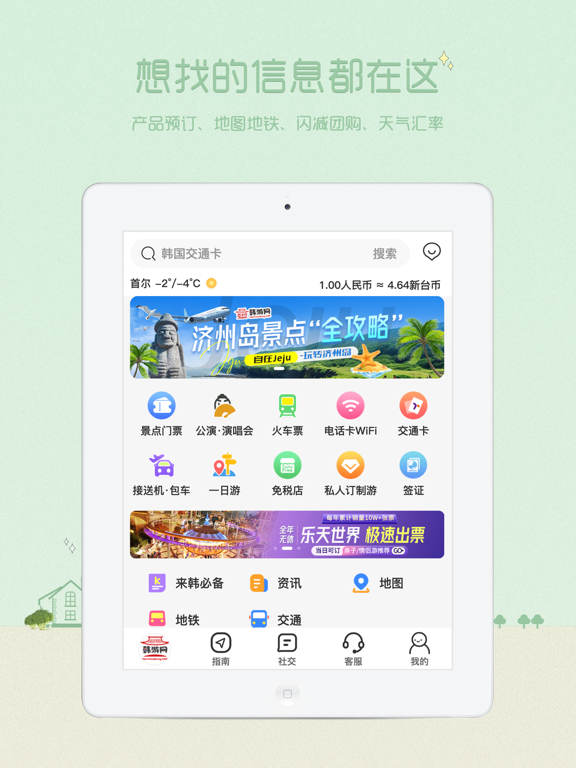 韩游网致力于做最专业的韩国旅游中文平台,总部位于韩国首尔,在中国青岛设有分公司,拥有专业资深的在线旅游创业团队,同时在韩国拥有规模最大的专业记者团队,确保第一时间提供鲜活的韩国资讯。凭借网站独有的核心优势,以及广大网友的鼎力支持,韩游网不断发展壮大,形成了以韩国资讯和产品预订为主的专业韩国旅游平台,包括韩国旅游攻略、酒店预订、景点演出门票预订、韩国无线WiFi预订、商家优惠券等核心业务。 【主要功能】 1,旅游资讯:提供丰富的韩国旅游信息,有包括护照,签证等旅游材料准备的信息;也有韩国旅游攻略,景点,餐饮,美食,购物,退税,中文地铁图等旅游中大家所必须了解的资讯信息,十分全面; 2,景点以及公演门票预订:提供韩国最全面的景点以及公演预订,价格低廉,基本上所有产品都是线上最低价,手机预订更方便,大部分产品可当天预订,随走随订; 3,随身WIFI预订:提供中国机场领取,中国快递包邮到家,韩国机场领取等多种领取方式,在韩国无线畅通; 4,酒店预订:几百家酒店民宿预订,各种房型,各种类别,海量酒店房型照片以及真实住客点评,让你挑到满意为止; 5,KTX预订:中国首家韩国火车票预订平台,从首尔去釜山仅需不到3小时,让你坐火车游遍韩国; 6,优惠券:海量商家优惠券下载,让你在韩国走到哪,省到哪。 【特性】 1,无需注册:无需繁琐的注册,非会员亦可预订; 2,急速预订:10秒内完成预订,及时满足您的预订需求; 3,安全支付:可以用支付宝,银联等多种支付方式支付,安全,便捷; 4,服务保障:不经过任何中介,和韩国商家直接联系,及时解决您在韩国遇到的各种难题,让您旅游更加顺利,舒心。订单页切换套餐类型修改