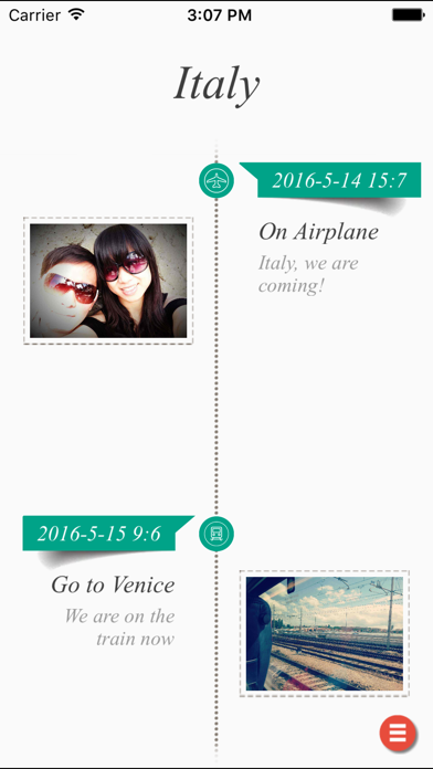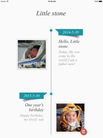 以时间线来管理您的事件(旅行,纪念日,家人等) 每个事件包含一个时间点,一个icon,一条详情,一张图片 简单易使用,没有满屏的日历格子,所有的事情都展示在一条时间轴上修复bug 优化ui