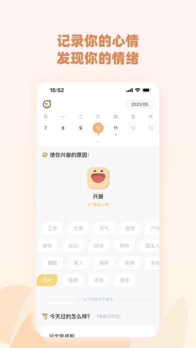 情绪日迹可以每天记录自己心情和情绪变化的原因,我们可以为用户生成心情报告,让你更便捷的发现自己的情绪变化和情绪波动。 通过使用情绪日迹希望可以帮助您发现和管理您的情绪变化,更好的面对生活且热爱生活。
