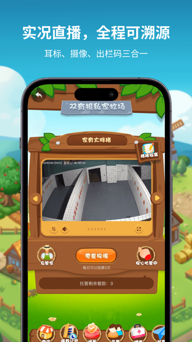 《乌豚邦》以卡通画风形式带您体验丰富的农场生活!并让您能享受到原生态的黑猪肉食品! 通过整合物联网和区块链技术,乌豚邦将虚拟娱乐和现实养殖相结合,在这里你能线上认领一头来自大别山区的生态有机黑猪,通过传统的古法牧养,见证它从农场到您的家庭餐桌的全流程,让您成为食品健康的监督者!让您足不出户就能成为一位生态农场主! -24H多场景监控 -专职饲养员科学喂养 -专业农场管家多对一指导服务