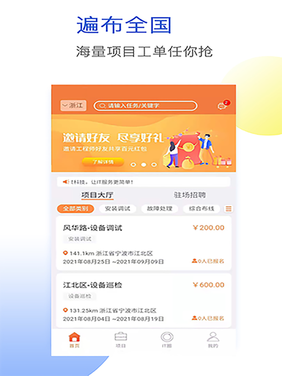 网络工程师要接单,就上闪蝠平台,随时随地给工程师提供海量工单。闪蝠平台提供便捷项目支付,免除结款忧虑。 【关于闪蝠】 闪蝠是一个面向全国网络工程师的接单赚钱平台。工程师完成线上注册和资质认证即可参与项目抢单赚钱,无论身在何处均可找到合适自己的项目。 【招募范围】 平台目前招募各个领域的网络工程师或施工服务团队,包括数通、网络安全、视讯、存储、服务器、防火墙等。 【工单类型】 目前平台发布的工单类型有安装调试、故障处理、综合布线、设备巡检、桌面运维、项目驻场、专家在线服务等各类型it服务。 【平台特点】 1、 平台每日发布覆盖全国的IT项目工单,随时随地可参与抢单 2、 平台提供便捷的项目支付渠道,不必担忧结款问题,工单完成可立即申请提现 3、 平台聚集大量行业精英,提供优质的行业资讯 4、 平台为工程师提供大量线上线下培训机会,提升工程师业务技能 5、 平台为工程师购买服务保险,充分保障项目施工安全 官方网站:http://www.batzb.com 官方微信:闪蝠众包 商务合作:zb@hooju.cn 联系我们:40000180841、优化兼容问题 2、优化隐私权限设置