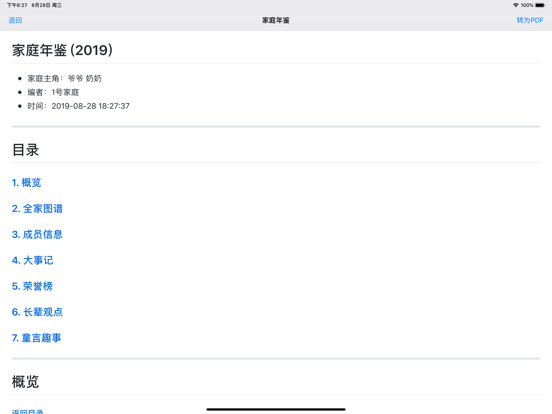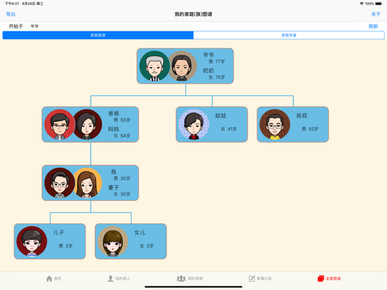 1、记录家人名字和家庭组成,记载家庭成员在出生、读书、工作等各阶段的重要事件和成长故事。 2、自动制作家庭图谱和家庭年鉴。汇集家庭概览、家庭图谱、成员信息、大事记、长辈观点、童言趣事和荣誉榜等重要信息。 3、家庭成员生日/结婚纪念日自动提醒。 4、页面支持屏幕缩放展示。用户只需通过手指缩放屏幕,就能随时放大和还原显示页面内容。 5、数据自主安全保护。所有数据在用户手机端本地存储,数据安全完全由用户自行掌控。支持数据的备份、恢复,也可在恢复时选择合并功能,实现多个家庭数据合并形成家族数据。 本 App通过以上功能和特色,可助力记录、分享和承传家庭和家族故事。1、优化用户体验。 2、修复已知缺陷。