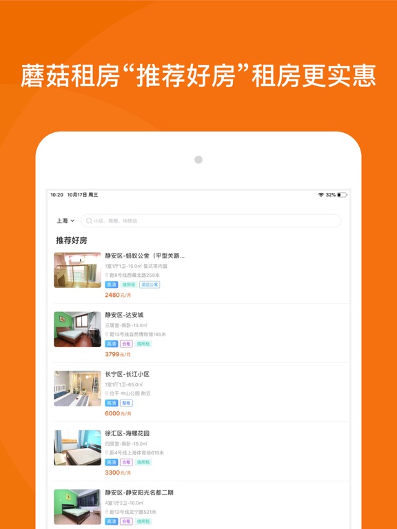 蘑菇租房目前已覆盖上海、北京、深圳、广州、杭州、宁波、南京、苏州、成都、重庆、西安、郑州、武汉、东莞、天津、厦门、合肥、济南、长沙、福州等多座城市,我们正努力不断向更多城市发展,不断改进产品功能,力求为用户提供舒适用户体验。平台提供在线筛选、预约、预定、网上签约等服务。 ◆优惠:蘑菇租房部分城市房源可享免租1个月,立减300、800元、赠好礼等福利喔! 【功能全面 多维度房源搜索】 *合租、整租、公寓:支持区域、地铁、价格、面积、户型等筛选; *地图找房:支持区域、地铁等筛选; *一键租房:直接进入找房筛选快速定位。 【流程顺畅 入住快捷】 *真房源:确保已发布各类平台和渠道的房源价格、描述内容、照片均为真实信息,接受用户举报; *预约看房:可通过线上功能联系顾问预约线下看房,方便快捷; *预定房源享优先签约权:看中房子可线上直接预定享有优先签约权; *在线签约:在线提交资料签相关合同,省时省心有保障; *在线支付:可轻松通过平台官网和应用预约、签约,完成签约后并线上渠道支付相关费用,并提供日常相关账单清晰明了,在线一键支付,方便快捷; *售后服务居住无忧:专业售后及客服团队,实时对接,及时协助解决问题;用户可通过平台申请报修、投诉服务,及时协调解决维修、投诉问题,只要您有住得不满意的地方,在这里告诉我们,蘑菇租房给您满意答复。 【联系蘑菇7*24小时为您服务】 1、咨询热线:400-060-6868 2、官网:mgzf.com 3、蘑菇君微信:mgzf001 ~~~ 下载应用开启找房模式~~~ 支持以上城市租房有需求的人员换工作、找室友都可下载应用,自带分享功能:微信好友、微信朋友圈、QQ好友、QQ空间,新浪微博等。修复已知bug,优化APP性能。