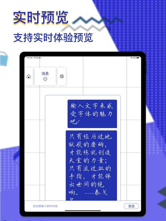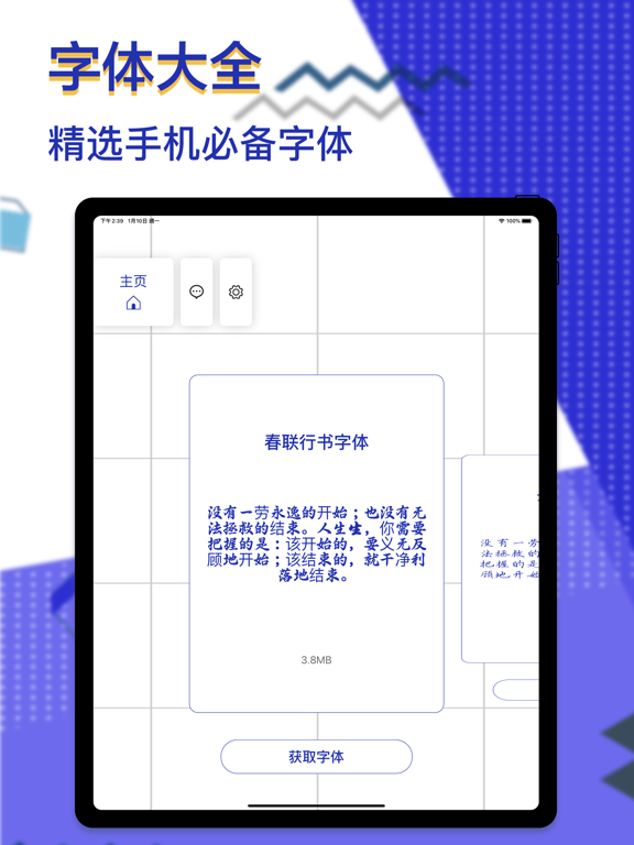 多种精选字体,字体大全,让你拥有各种小众迷人字体,形成自己独特风格。 字体百变美观,花样百变,绽放您的个人风格,让聊天变得更有趣。 操作简单方便,清新界面,解救审美疲劳,手机必备字体软件。 隐私政策:http://ananziti.other1.site/yinsi.html 服务协议:http://ananziti.other1.site/fuwu.html 关于订阅说明 App Store官方订阅功能为自动续费订阅,iTunes Account进行确认支付。用户需手动在iTunes/Apple ID设置管理中管理自动续订功能,如果订阅期结束前的24小时内未关闭自动续订功能,订阅周期将会自动延续。如果您想取消订阅,请在您的iOS设备上前往“设置”-->选择“iTunes Store与App Store”-->点击“Apple ID”,接下来选择“查看AppleID”,进入“帐户设置” ,点击“订阅”-->“管理”,并选择对应的订阅,之后便可取消订阅。-优化使用体验