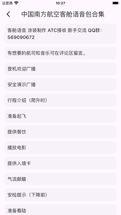 提升你的模拟飞行乐趣与真实性!航空公司语音包为你带来真实的乘机声音体验,覆盖中国各大主要航空公司。无论是起飞前的安全须知、空中服务的热情问候,还是降落时的感谢与道别,每一段语音都精心收录,为你的模拟飞行增添逼真的细节。 主要特点: 多样化的语音内容:包含中国各大航空公司的乘机语音,从国内航班到国际航线,应有尽有。 提升模拟飞行体验:完美再现真实航空公司的声音,增强飞行仿真的逼真程度。 易于使用:简单的安装和选择功能,让你轻松享受到每一次模拟飞行的真实感受。 带上你的头戴式耳机,准备好迎接身临其境的模拟飞行体验吧!下载航空公司语音包,即刻提升你的模拟飞行乐趣!ios18内购闪退问题修复 音频偶现播放失败问题修复