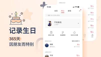 ● 情感咨询 咨询师在线及时解答您的情感问题,感情、婚姻、事业、学业、工作、家庭……收获有温度的咨询回复. ● 记日子 友谊与爱不可辜负,生日、纪念日、节日,每个一起走过的日子,都值得纪念,智能匹配通讯录好友生日,免去询问和手动添加的麻烦. ● 送祝福 幸福的生日,往往有蛋糕和礼物的陪伴。我们与全国主流城市的蛋糕、鲜花店合作帮您送礼一步到位. [联系我们] 感谢您使用生日管家,使用中有任何问题可在“我的--帮助与反馈”中进行反馈,我们会及时进行处理,也可通过以下方式进行反馈: 官方微信公众号: 生日管家 官方新浪微博: @生日管家修复了一些问题