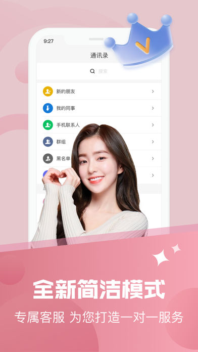 软件简介 1、联系一键建立,可通过手机号,二维码,名片,通讯录轻松加好友。 2、聊天界面支持文字,语音,图片,表情等。消息发送方便快捷 3、支持语音视频聊天,沟通随时随地。 4、发表你的个性签名,让好友知道你的状态。 1.群聊消息优化。 2.弱网重连,提升体验。