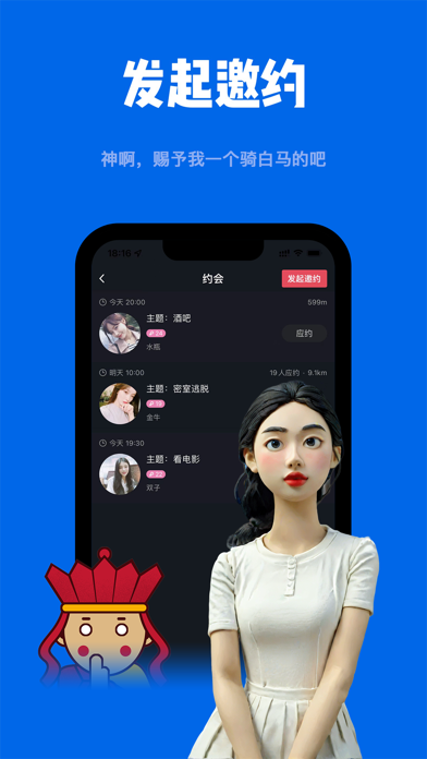 年轻人的约会新方式!!! 约吃饭、看电影、演唱会、密室逃脱... 在这里,才华不会被埋没,用炸裂的演技展示真实自我,获取Ta的好感,夺回属于你的舞台焦点。 发起邀约 神啊,赐予我一个骑白马的吧 对方应约 稀饭,你是我的菜 联系对方 幽默是一种艺术 线下见面 随时随地的撒狗粮 拍摄短视频 一段即兴的rap展示,让世界认识你 网友疯狂打Call: 「 好瘦的八戒」爱了爱了 「 茉莉蜜茶」完了,我中毒了,一天要打开APP几百次 「 陌人」抓到帅气学长一枚,收工~ 如果您有任何问题,请及时在APP中砸向我们,我们喜欢被砸,您还可以通过邮件吐槽。 吐槽邮箱:tw@yohoing.com1.优化应用性能 2.修复已知问题