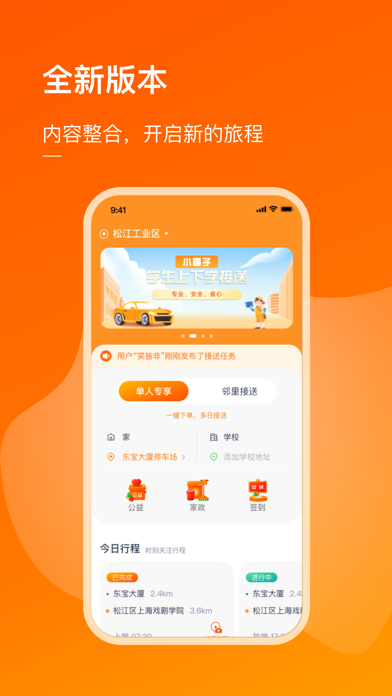 小圈子APP是一款综合性服务软件。旨在践行和推广公益的同时,也为用户排忧解难! 小圈子APP为了更好的服务用户,同时配套了“橙长社”线下服务平台,采取线上采集服务和需求信息,线下提供服务的形式,做到更好的用户体验。主要服务内容为社区公益、邻里互助、宝妈创业、法律咨询和儿童及青少年校外托管、看护等。 小圈子大力提倡用户之间可以互帮互助,鼓励用户邻里和睦,希望形成一种充满爱心和美好的社会氛围,让生活更简单。 线上小圈子功能介绍及特色服务: 借用服务: 线下门店为小圈子会员用户提供免费工具借用服务. 家政服务: 小圈子为广大用户提供线上预约线下专业的家政服务. 【公益板块】小圈子做的是摸得着、看得见的小圈子公益。 邻里互助:上下学的互助接送、临时看护、宠物照看等邻里互助. 公益:志愿者、安全、清洁、卫生、共建美好家园等公益服务 提供金融、法律、健康养生、文艺、培训、安全等相关咨询服务 【求助接单 安全便捷】 求助和接单两种模式,自定义内容时间地点,求助接单安全易操作 【参与公益 如此简单】 无穷的远方,无数的人们,都和你我有关,让公益活动进入我们的视线。 线下服务站点:橙长社介绍 1、橙长社? 橙长社是小圈子APP社区服务的线下入口,小圈子APP线上收派服务订单,线下橙长社对接服务的网点,同时提供APP会员线下增值服务的主要场所。 2、儿童校外驿站 儿童校外驿站服务内容为,儿童上下学接送、临时性的托管、看护等服务。并且在看护期间为孩子提供各类互动、绘画、思维训练等公益内容,让孩子玩的开心,学的开心,让宝妈工作安心、生活省心。 3、妇女创业中心 橙长社是一个坚决支持妇女创业的一个社会力量,针对心理咨询、法律服务、升学指导、婚姻关系、电商创业等项目,邀约政府主管部门进行政策宣讲,市、区两级创业指导专家进行指导,并深度对接供应链、销售渠道、售后等资源,节约妇女创业成本,提高创业效率。 4、法律公益咨询站 橙长社的社区法律公益咨询站,是宝妈用户保障自身合法权益的强力后盾。会定期邀约公检法的专家、律师等,为宝妈提供与家庭、生活、婚姻、工作以及创业等相关的,各类法律知识讲座以及一对一咨询等免费服务。提高宝妈们自我保护的法律意识。 5、邻里互助中心 橙长社的邻里互助中心是践行邻里互助,促进社区和谐的一个线下服务站,也是热心宝妈们互相交流公益活动的平台。可以通过小圈子APP来获取求助对象的需求,并且就近提供帮助和服务。从而增加邻里和谐,让社区生活变得更加地美好。 【温馨提示】 接单人接受任务期间,当到达任务地点后需要持续使用GPS定位服务,切换到后台时,仍会保持GPS连接,相比其他操作会消耗更多的电量,长时间使用GPS在后台运行会影响电池续航时间。 【联系我们】 官网链接: http://www.jinyiachina.com 联系方式: 021-57805588修复首页-今日行程模块数据加载失败问题~