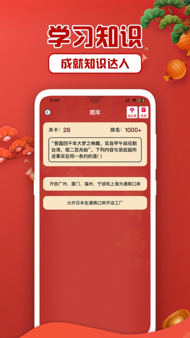 【题库闯关】历史地理学科关卡,休闲学习。 【邀请好友PK】非实时PK,看看谁是PK之王。 【题库学习】每日更新学习新知识。 【淘书商城】多种书籍供你选择购买,返利满2元送红包。 【返利提现】购买商品返利,可提现。优化部分功能 修复已知bug