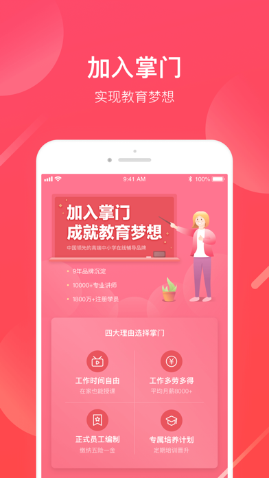 掌门好老师是掌门1对1为教育工作者精心打造的专业教学服务平台。基于掌门9年教育行业积累和精细化教研,为老师们提供一体化的工具,包括教资刷题考证、最新政策解读等。掌门好老师汇聚了全国幼小初高各学科的优秀教师,欢迎加入我们,相互交流共同成长,一起实现教育梦想! 加入掌门: 工作时间自由、工资多劳多、正式员工编制,还能定期晋升加薪。快来免费报名加入掌门讲师! 报名后即可在app内随时查看入职进度哦~ 教师资格证: 支持刷题,真题练习,还有名师专业考点解析课程,助你教资考试过过过~ 最新教育资讯: 精心筛选教育领域的最新资讯,解读政策及市场趋势,你想知道的教育信息都在这儿 微信公众号:掌门讲师平台 优化了一些内容及体验