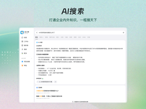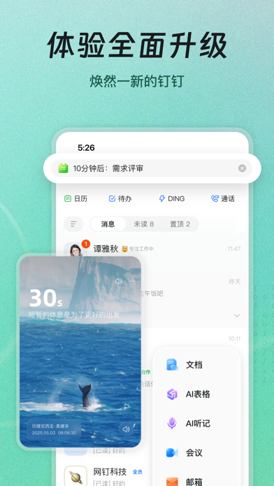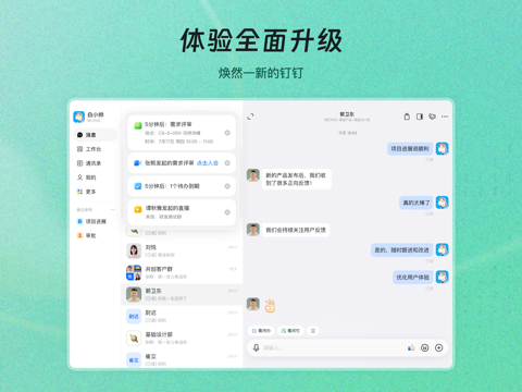 钉钉,AI 时代的工作方式。 作为智能化的企业级协同办公与应用开发平台,钉钉以 AI 和数字化技术为核心,服务超千万家企业与组织。10 年来坚持用智能技术为企业赋能,帮助打造敏捷、高效、富有创造力的数字化组织,实现从协作到业务的全链路升级。如今,80% 的中国 500 强企业共同选择钉钉,包括人民日报、中国联通、中国广电、一汽集团、宁德时代、赛力斯汽车、新浪微博、虎扑、中国铁建、太平洋保险、申通快递、长龙航空、柳钢集团、蒙牛、安踏、立白、百丽国际、宇树科技等,覆盖各行各业的标杆客户。钉钉以 AI 驱动协作,以智能连接价值,让每个企业更快、更强、更具创造力。 你可以这样打开钉钉: 1、AI 钉钉,简洁、高效、以人为本 【智能办公就用 AI 钉钉】 操作高效,视觉美观:效率岛,智能判断当前最重要的信息,一键触达。 沟通即业务:聚焦话题,降噪沟通,通过 AI 分析让业务和知识高效流转。 AI 办公小助理(DingTalk A1):通过钉钉 AI 办公小助理,自动生成总结纪要、行动待办、分析报告,还能同步 AI 表格。提升效率,让工作更轻松。 【协同创作就用 文档 AI】 智联万物,协作无阻:支持在文档中插入表格、脑图、群聊、日程、视频、任务流等丰富元素,让分散琐碎的工作信息在文档中有序呈现,团队即时协同互动,无缝协作。 AI 帮你创作,灵感无限:创意构思、方案策划、信息整理,AI帮你唤醒灵感一刻;丰富内容、改写语气、润色文案,创作本就如此轻松。 【高效开会就用 会议 AI】 自动匹配发言人字幕:钉钉会议可精准定位多人会议中的发言人,让观点碰撞清晰有序,同时实时识别会议语音并呈现字幕,嘈杂环境或出差路上也能及时看到讨论内容,随时随地,流畅开会。支持AI听记与实时问答,用 AI 重塑会议互动体验,提升效率。 AI时代的记录方式:闪记升级为“AI 听记”,30+ 行业场景模板,支持声纹自动识别发言人。 2、智能、开放、高效的的协作体验 【文档 AI】:一切信息皆可联通,多人编辑实时协同,让团队经验有效沉淀,让知识流转畅通无阻。 【会议 AI】:AI 实时字幕智能转写,多端快捷切换流畅体验,还可共享屏幕和文档实现多人在线编辑,或通过表情、气氛、状态对他人观点表态,打破线上交流的距离感,远程开会也和面对面一样。 【项目 AI】:丰富项目模板开箱即用,满足企业个性化需求,深度打通钉钉文档、群聊、OA 审批、Agoal 等,消除数据孤岛,实时跟进项目进展,结构化沉淀团队经验。 【日历 AI】:通过自然语言输入轻松创建日程,智能推荐会议时间及场地,一键查看参会人忙闲,灵活进行日程规划,个人待办明晰有序,团队调度轻松安排。 【全球化能力】:全界面翻译和系统应用支持超 20 种语言,海外大量加速节点让协作环境更稳定,国际化会议自动推荐全员适配时段,企业出海无阻碍,跨国合作有保障。 3、企业级组织数字化和业务数字化平台 【AI 表格】:让每个人成为 AI 应用“创造者”,无需开发,像做表格一样,轻松搭建业务系统。丰富的 500 强企业同款模板,开箱即用,客户管理、门店管理、经营分析、招聘管理等业务系统轻松上手,会用表格就会搭。 【AI 搜索】:企业+全网信息一搜即得,答案、方案、计划一步到位。 【钉钉宜搭】:业务创新,一搭就行,仓库通、任务通、客户通等精品模板开箱即用,人人都是创造者。 【钉钉管理套件】:提供人事管理、财务管理、差旅管理、客户管理、合同管理、招聘管理等一站式管理数字化方案,助力企业经营升级。 【钉钉 LTC 解决方案】:为企业提供目标制定拆解、销售跟进、项目交付、持续服务的端到端一站式平台。 4、联系钉钉 支持通过「我的-客服与帮助-在线服务/热线服务」进行咨询,你的体验,非常重要。 使用条款:https://www.apple.com/legal/internet-services/itunes/dev/stdeula/【日历待办:新增跨时区日程】 预约日程添加跨时区参与人时,一键提醒切换为对方所在时区;参会方加入日程后,明确感知组织人参会时间和设备时区的偏移,让会议准备更有安全感。