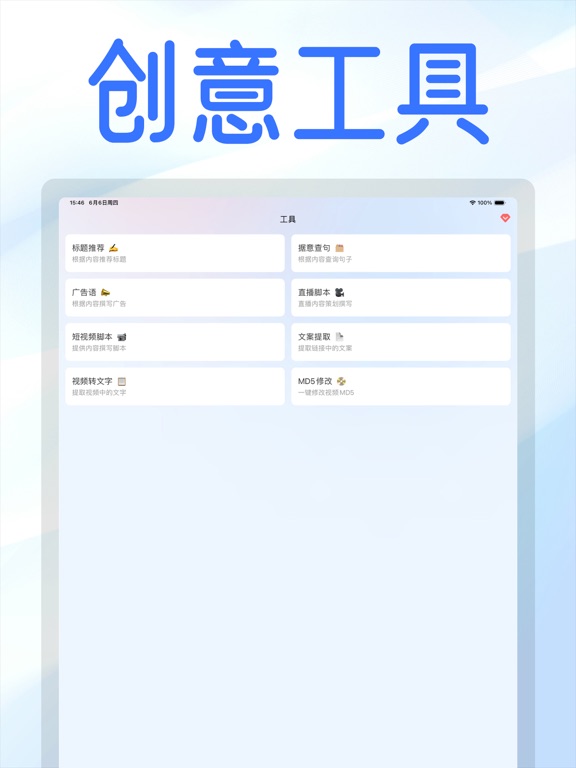 专注广告创意、短视频创意。 -丰富的短视频素材内容,是您灵感来源; -高效的创意制作工具, 自媒体专业指南。 简单易操作,助你玩转短视频营销。 会员订阅: 订阅价格为每年68元、每月28元。 订阅会自动续订,除非在当前期间结束前至少24小时关闭自动续订;帐户将在当前期间结束前24小时内收取续订费用,并确定续订费用 订阅可以由用户管理,并且可以在购买后转到用户的AppStore帐户设置来关闭自动续订 隐私政策:https://blog.csdn.net/2401_83500611/article/details/139499111 使用条款:https://blog.csdn.net/2401_83500611/article/details/1394991531.修复已知问题 2.优化项目体验