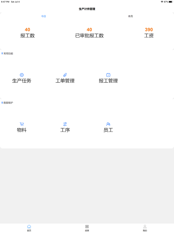 操作简单,使用方便,基础功能免费,主要包括生产任务管理、工单管理、报工管理、物料管理、工序管理、员工管理和统计报表功能。查询统计功能优化