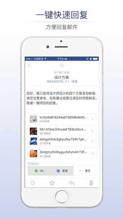 商务密邮是一款方便、快捷、易操作的加密邮箱,其突出的特点在于“安全”。 商务密邮使用SM9商密第九号算法,对邮件进行“一邮一密”式加密处理,确保邮件在传输、存储过程中都处于加密状态,商务密邮同时支持邮件阅后即焚,充分保护用户的个人隐私,杜绝用户的邮件信息被窃取或泄漏。 采用高强度加密的SM9算法(IBC标识密码算法),现有计算能力难以破解。 勾选阅后即焚的邮件在跳出阅读后即刻自动删除,配合加密技术,可杜绝各种形式的邮件泄密。 多个邮箱账户可随时切换,再多分身也能随时合体;一键快速回复功能,让您的沟通迅速不间断 语音转文字便捷写信,不用再繁琐地打字;会话模式简化邮件列表,让您的邮件回复像聊天一样简单。 商务密邮系北京十安赛恩公司自主研发产品,十安赛恩由数据安全领先企业明朝万达(股票代码:835348)领投,致力于为用户提供优秀的加密邮件服务。1.优化用户体验,修复异常问题